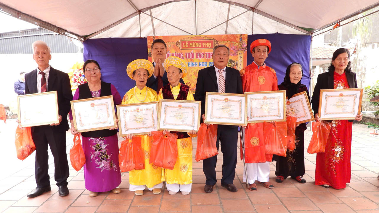 Nhân dịp này, đại diện Hội Người cao tuổi tổ dân phố đã gửi tới các cụ những vần thơ chúc thọ đầy ý nghĩa: