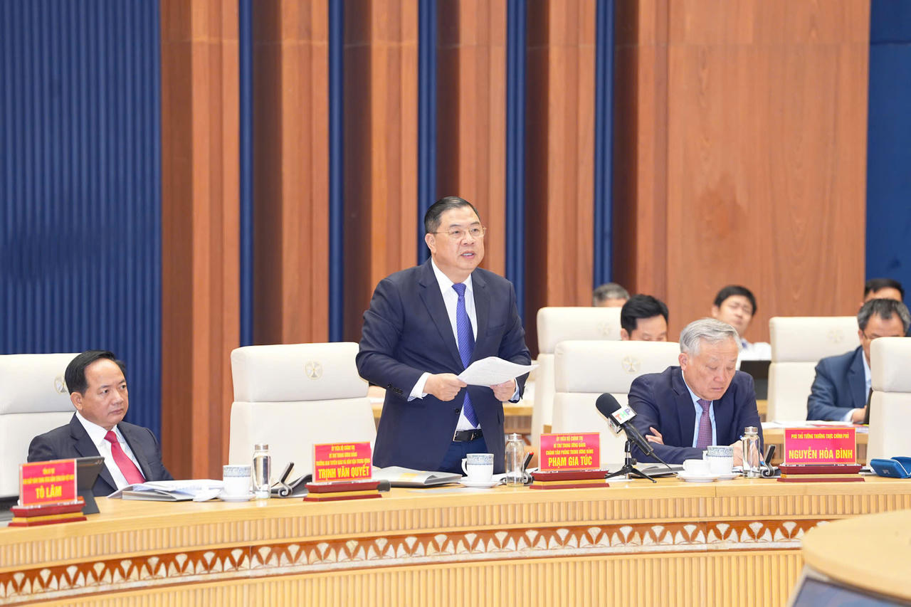 Ủy viên Bộ Chính trị, Bí thư Trung ương Đảng khóa XIV, Chánh Văn phòng Trung ương Đảng Phạm Gia Túc phát biểu tại buổi làm việc.