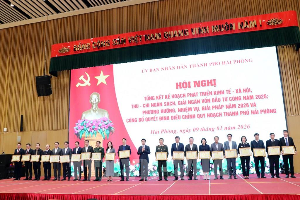 Chiều 9/1, tại Trung tâm hội nghị và Biểu diễn, Ủy ban Nhân dân thành phố Hải Phòng đã tổ chức Hội nghị Tổng kết, đánh giá kết quả thực hiện nhiệm vụ phát triển kinh tế - xã hội năm 2025 và phương hướng, nhiệm vụ, giải pháp năm 2026; triển khai các nội dung về: Kịch bản tăng trưởng kinh tế; Kế hoạch giải ngân vốn đầu tư công; Quyết định giao dự toán thu - chi ngân sách năm 2026; Công bố Chỉ số cải cách hành chính năm 2025; Công bố Điều chỉnh quy hoạch thành phố, thời kỳ 2021-2030, tầm nhìn đến năm 2050.