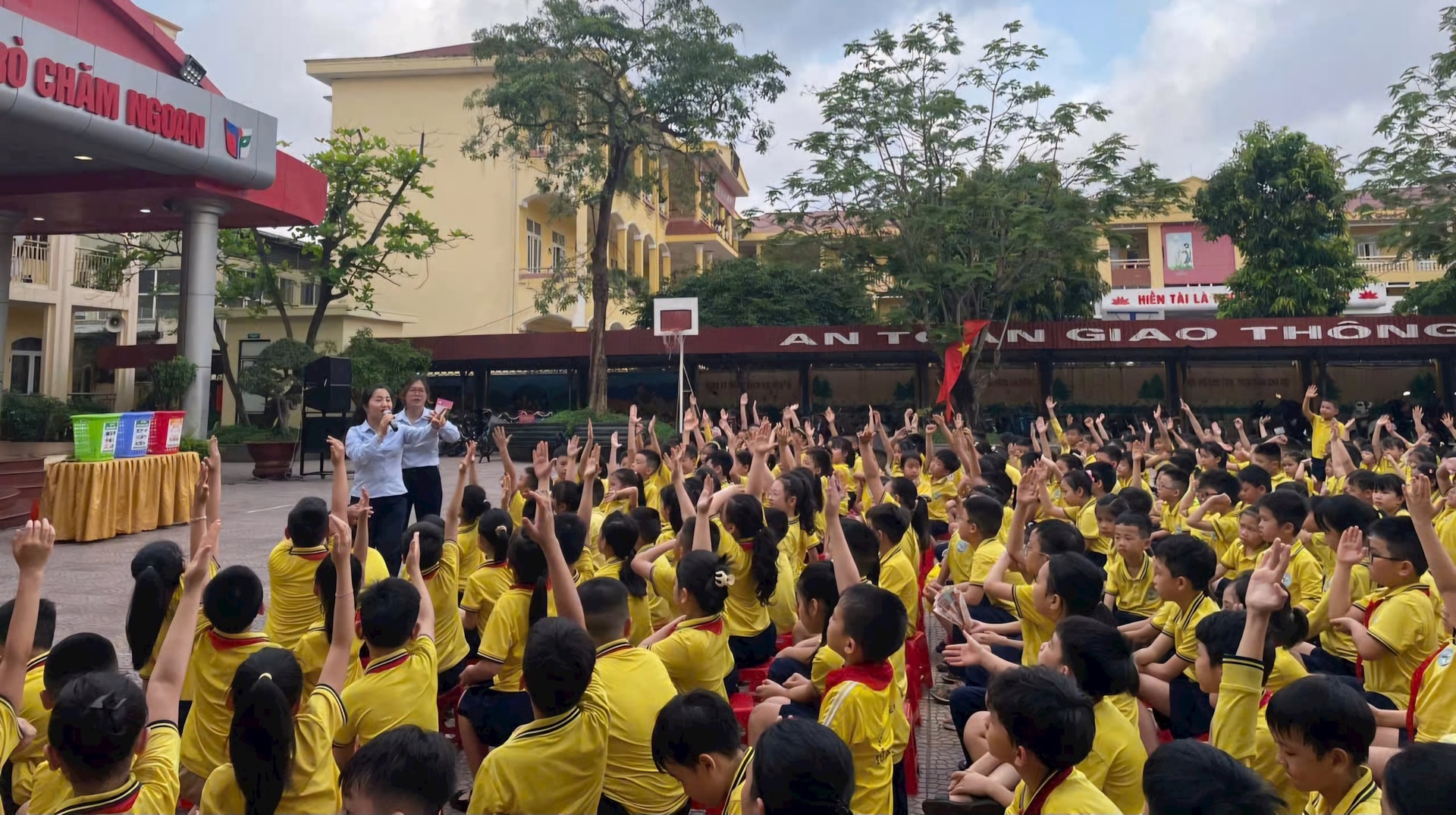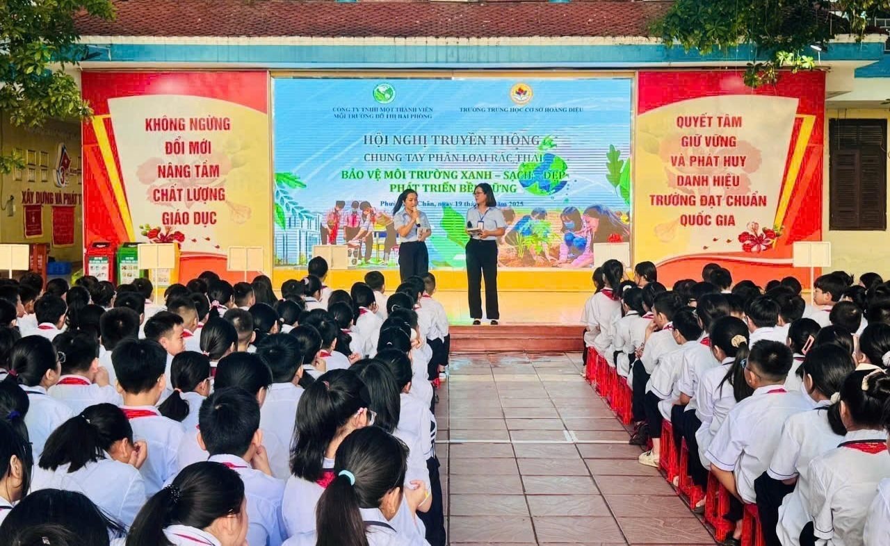 Công ty Môi trường đô thị Hải Phòng phối hợp các đơn vị tuyên truyền về phân loại rác thải tại nguồn, đổ rác đúng giờ, đúng nơi quy định tại các trường học.