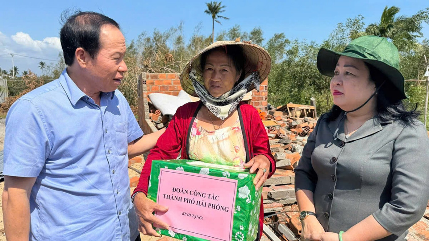 Bí thư Thành ủy Hải Phòng cũng đã đến thăm hỏi, động viên và hỗ trợ các hộ gia đình tại thôn Hòa Mỹ, xã Xuân Cảnh (tỉnh Đắk Lắk) chịu thiệt hại nặng nề do cơn bão số 13.