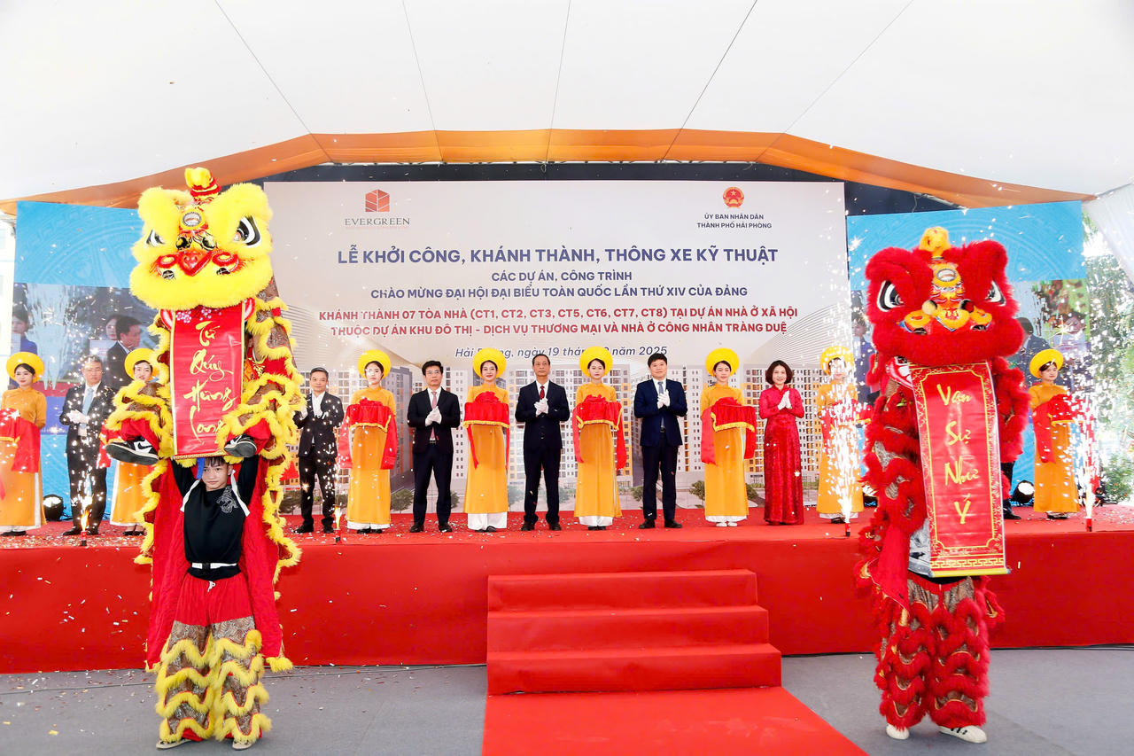 Hòa trong không khí thi đua lập thành tích chào mừng Đại hội đại biểu toàn quốc lần thứ XIV của Đảng, ngày 19/12/2025, TP Hải Phòng đồng loạt tổ chức khởi công, khánh thành nhiều công trình quy mô lớn, trong đó Dự án NOXH Evergreen Tràng Duệ được đánh giá là điểm nhấn quan trọng, thể hiện sự quan tâm của thành phố đối với công tác bảo đảm an sinh xã hội, chăm lo đời sống cho công nhân, người lao động.