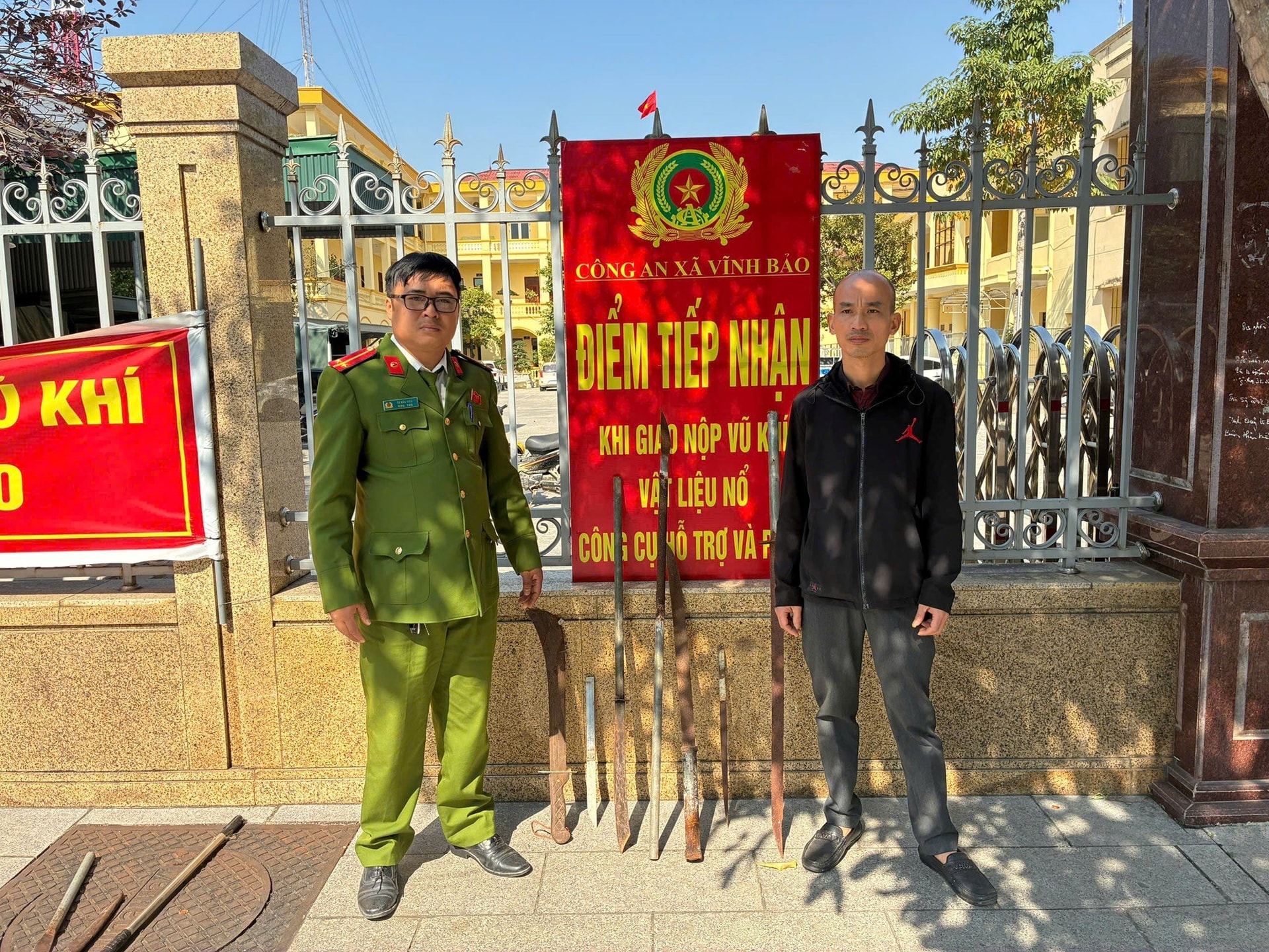 Trong thời gian từ 7-9/1, Công an xã Vĩnh Bảo cũng đã vận động nhân dân giao nộp 1 khẩu súng bắn đạn hoa cải, 8,6 kg pháo nổ tự chế, 13 đao, kiếm các loại.