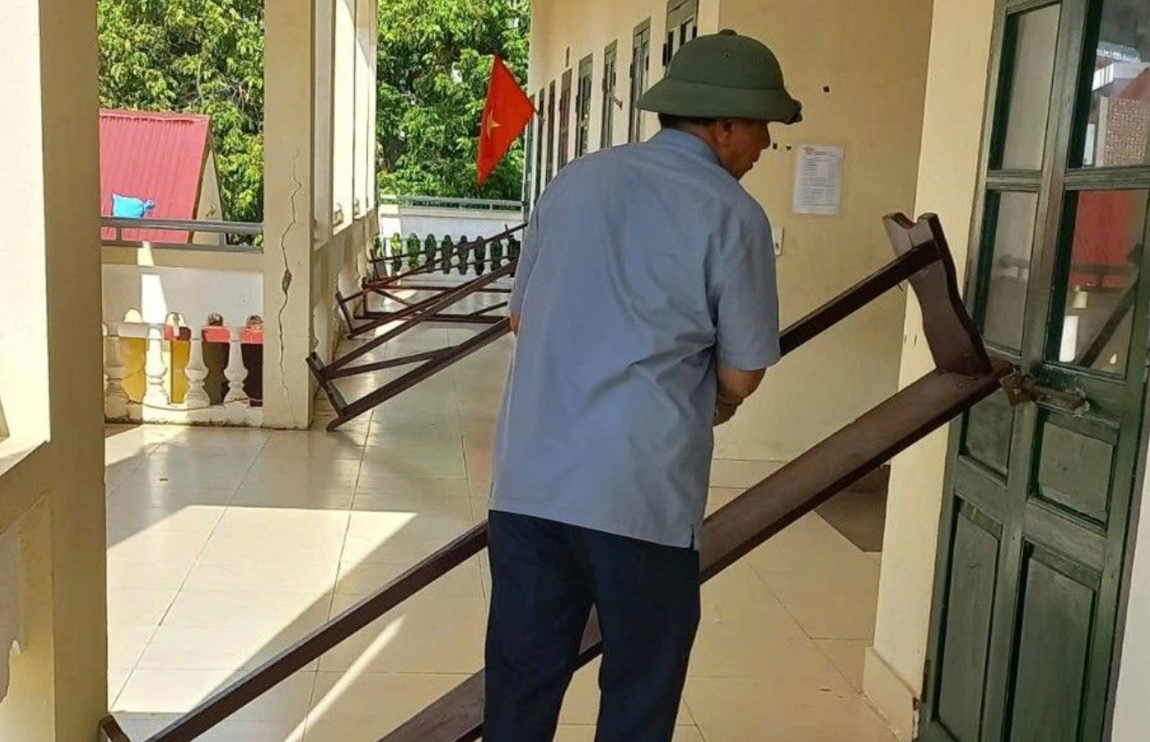Chủ động gia cố các phòng học tại Đồ Sơn, Hải Phòng. Ảnh: Hoàn Nguyễn