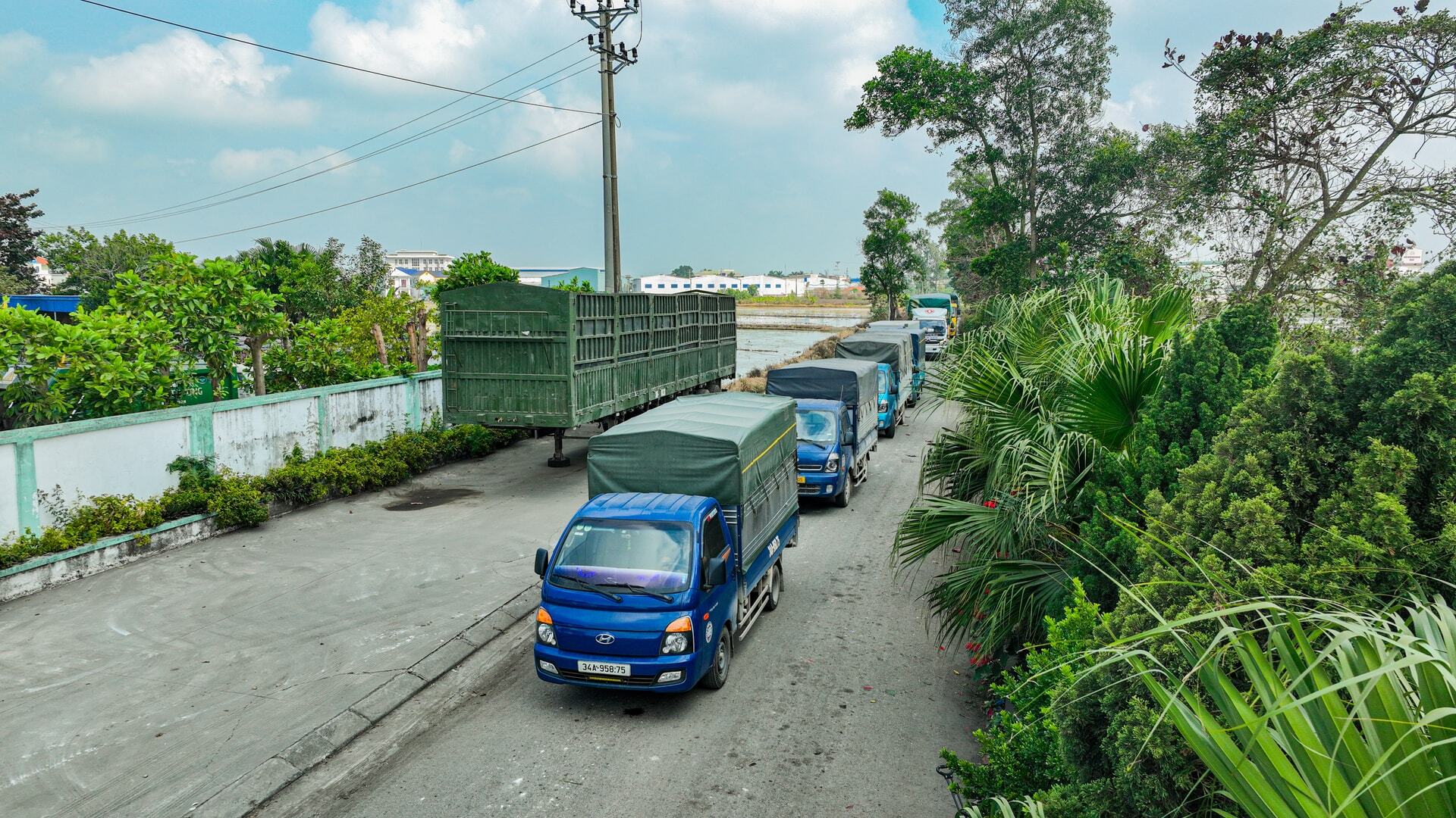 Đoàn xe dùng để chở số giá đỗ ngâm hóa chất đi tiêu hủy.