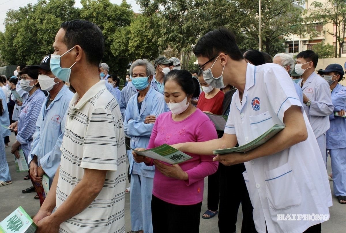 Nhân viên y tế Bệnh viện Phổi Hải Dương phát tờ rơi tuyên truyền phòng, chống bệnh lao cho người dân.