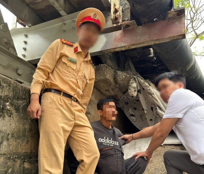 Bắt quả tang một đối tượng tại khu vực cầu Tam Bạc. Ảnh: Cục Cảnh sát giao thông