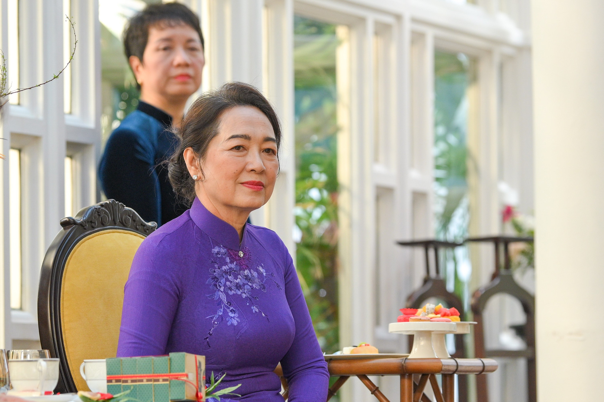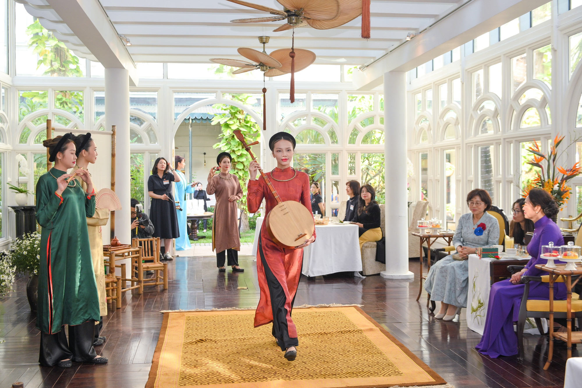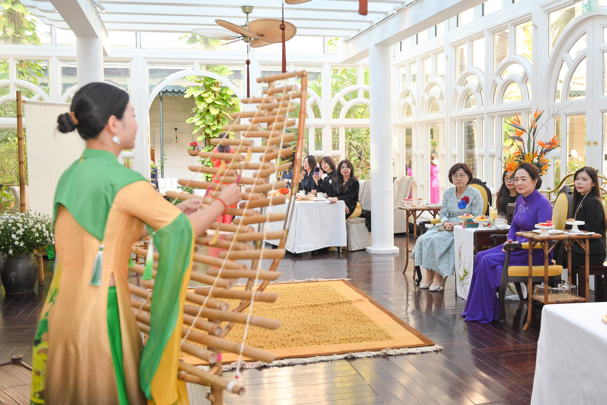 Hai Phu nhân thưởng thức những tiết mục biểu diễn nhạc cụ dân tộc Việt nam.