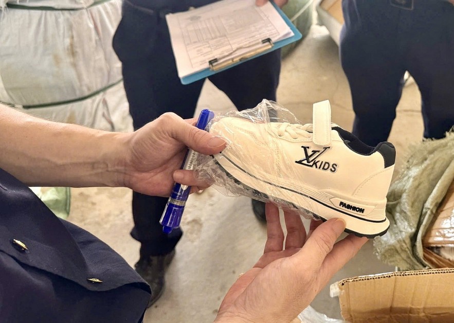 Lực lượng hải quan phát hiện, bắt giữ giày có dấu hiệu vi phạm sở hữu trí tuệ. Ảnh: CHQ