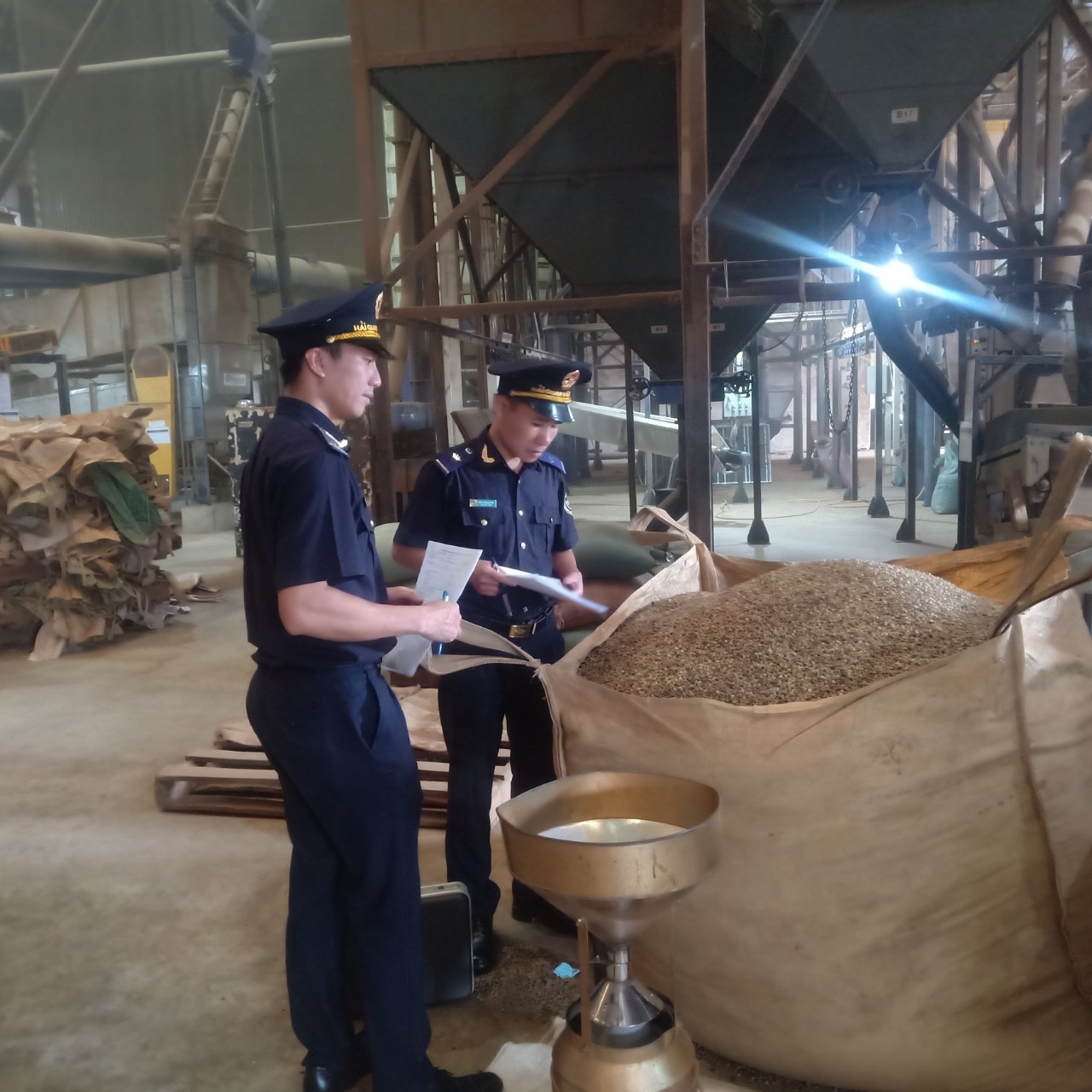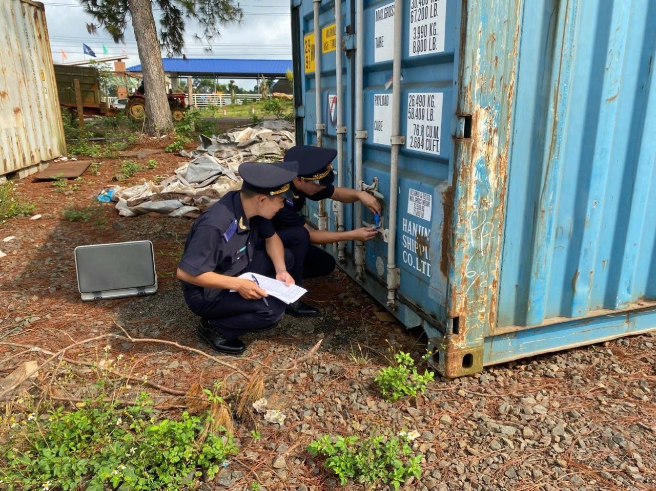 Công chức Hải quan đi kiểm tra thực tế hàng hóa tại cơ sở. Ảnh: Lạc Nguyên