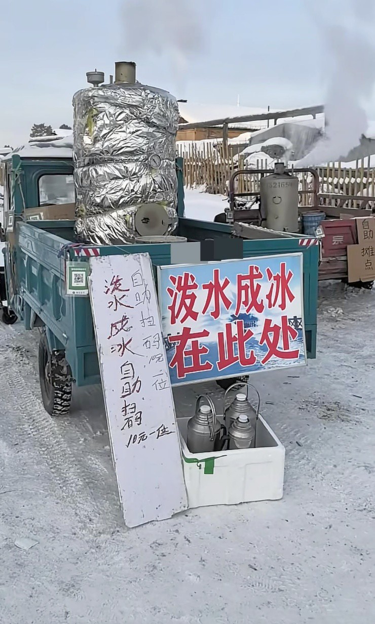 Tại Khu du lịch làng Bắc cực ở thành phố Mẫu Hà, tỉnh Hắc Long Giang, Trung Quốc hiện đang rộ lên dịch vụ “biến nước sôi thành tuyết”.