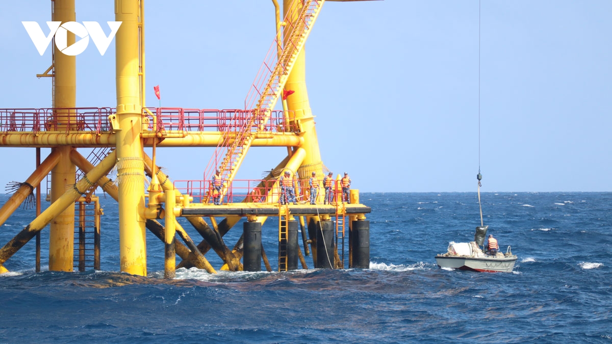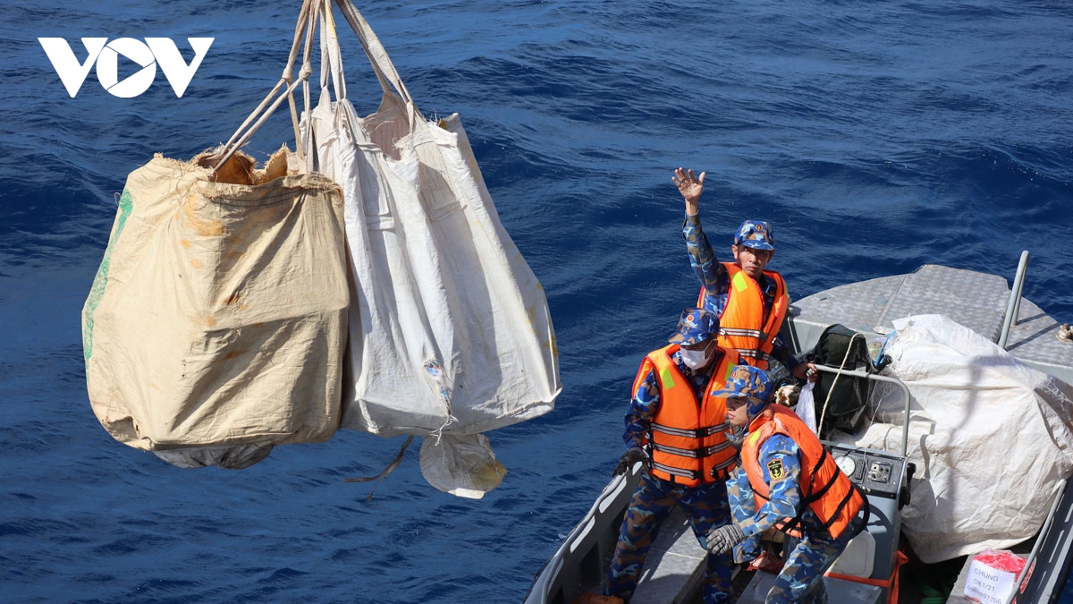 Vượt qua những cơn sóng lừng, đoàn đã tiếp cận thành công các nhà giàn 1/9, 1/20, 1/17, 1/21 và tàu 953. Quy trình vận chuyển quà Tết giữa trùng khơi là một nỗ lực rất lớn của cán bộ, chiến sĩ. Hàng hóa được hạ xuống xuồng để đưa đến các nhà giàn, tàu trực.