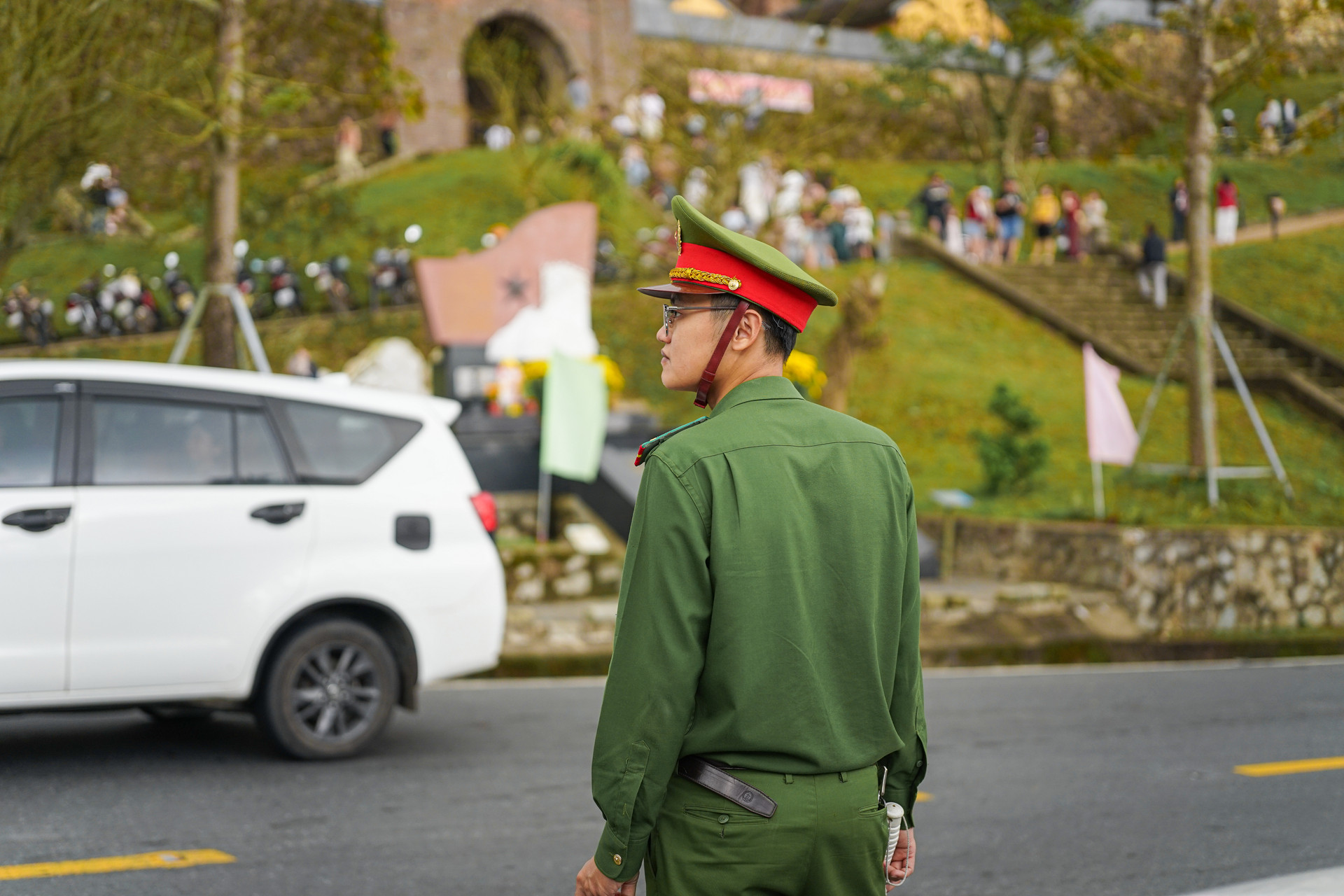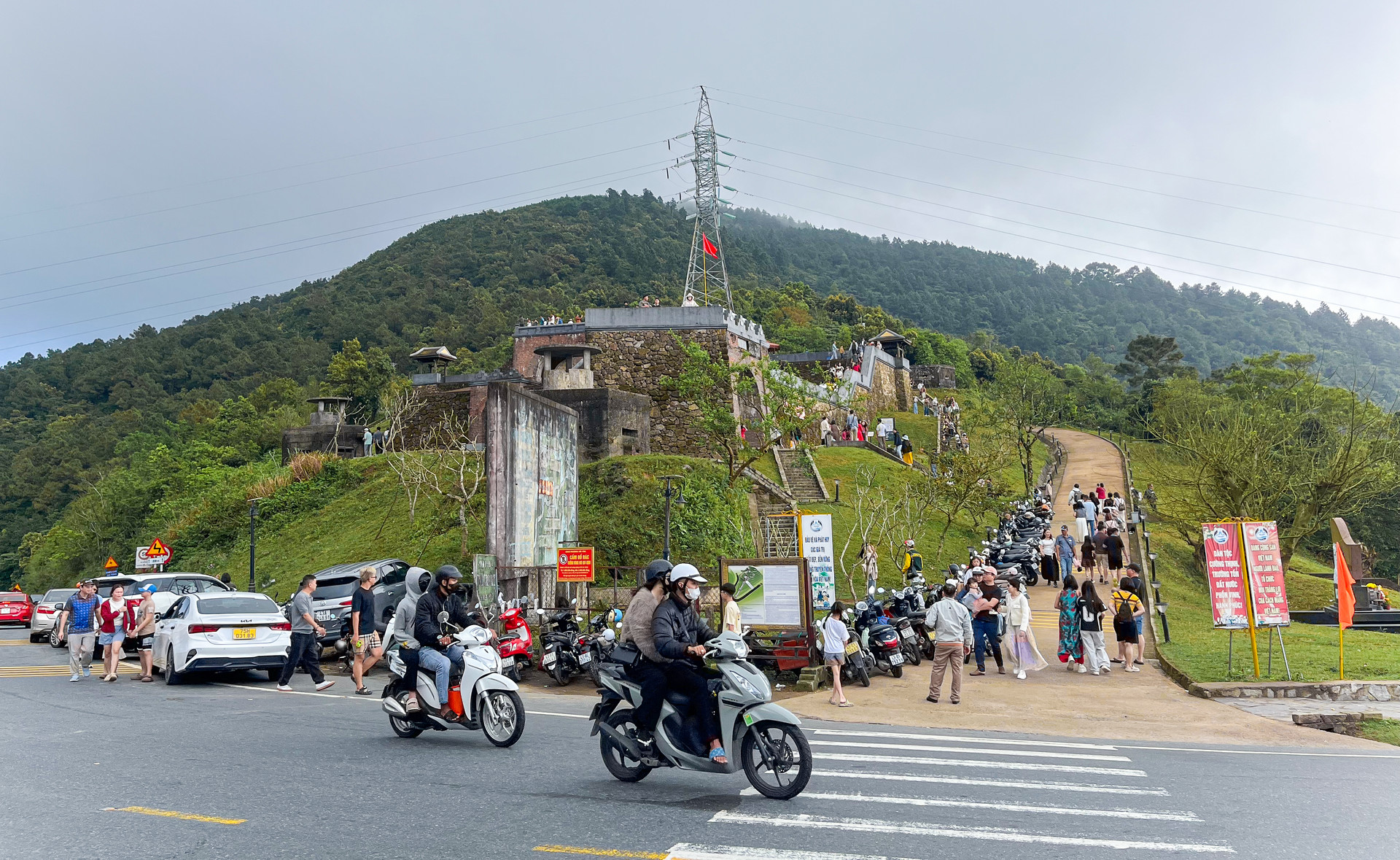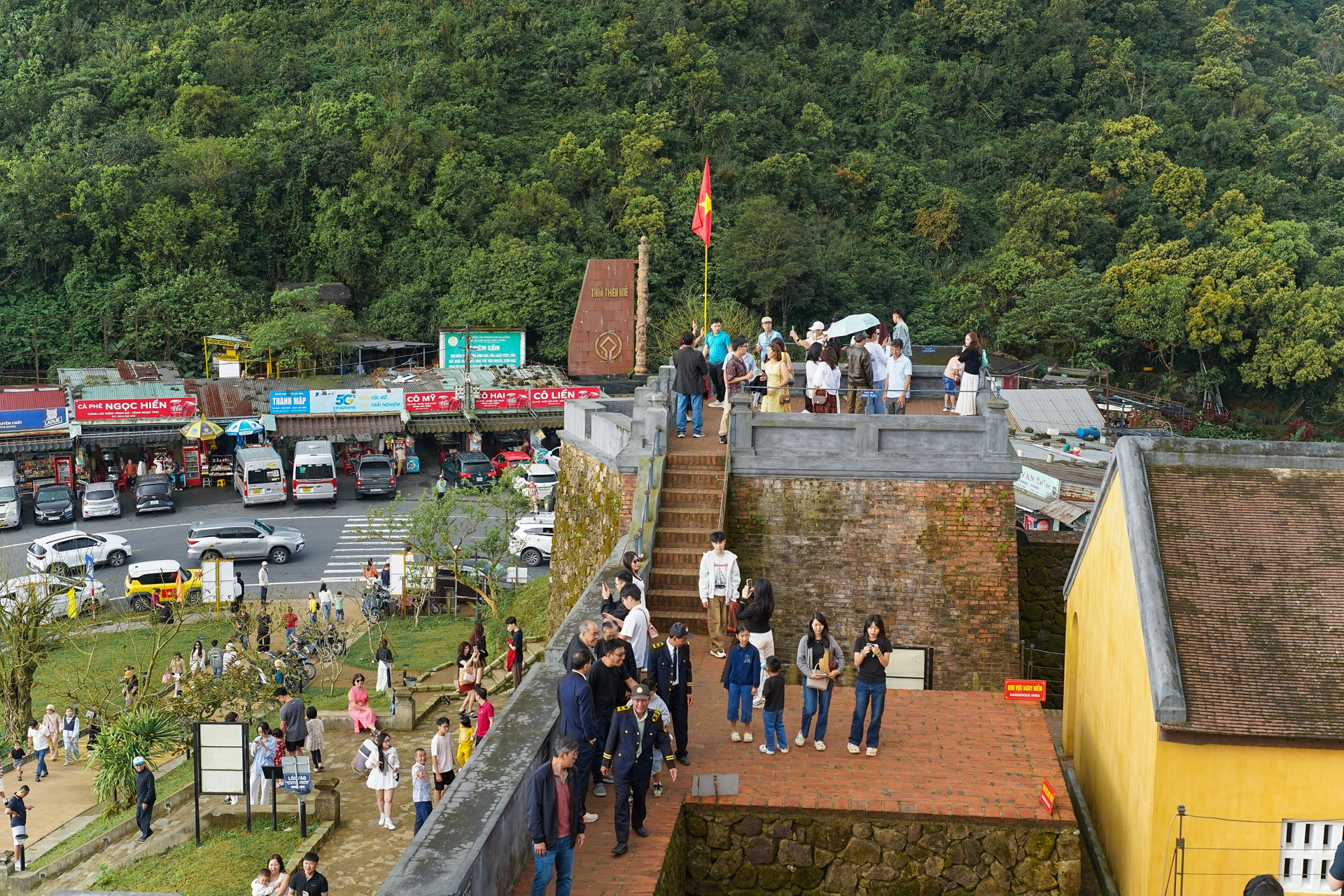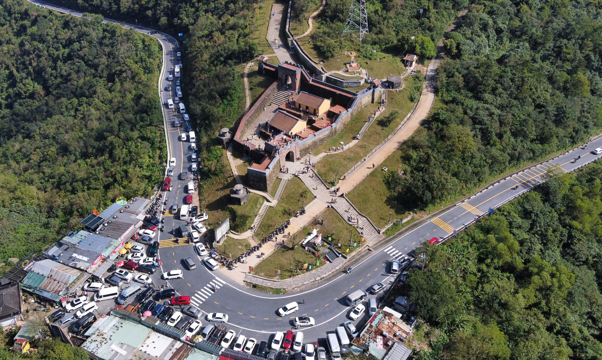 An ninh trật tự, an toàn giao thông được bảo đảm để du khách an tâm du xuân, tham quan di tích Hải Vân Quan. Ảnh: XUÂN SƠN