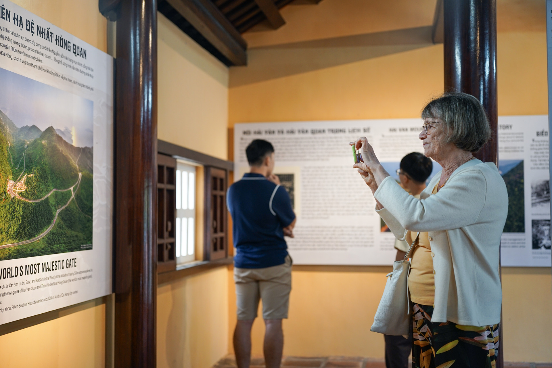 Du khách tìm hiểu thông tin về di tích tại không gian trưng bày. Ảnh: XUÂN SƠN