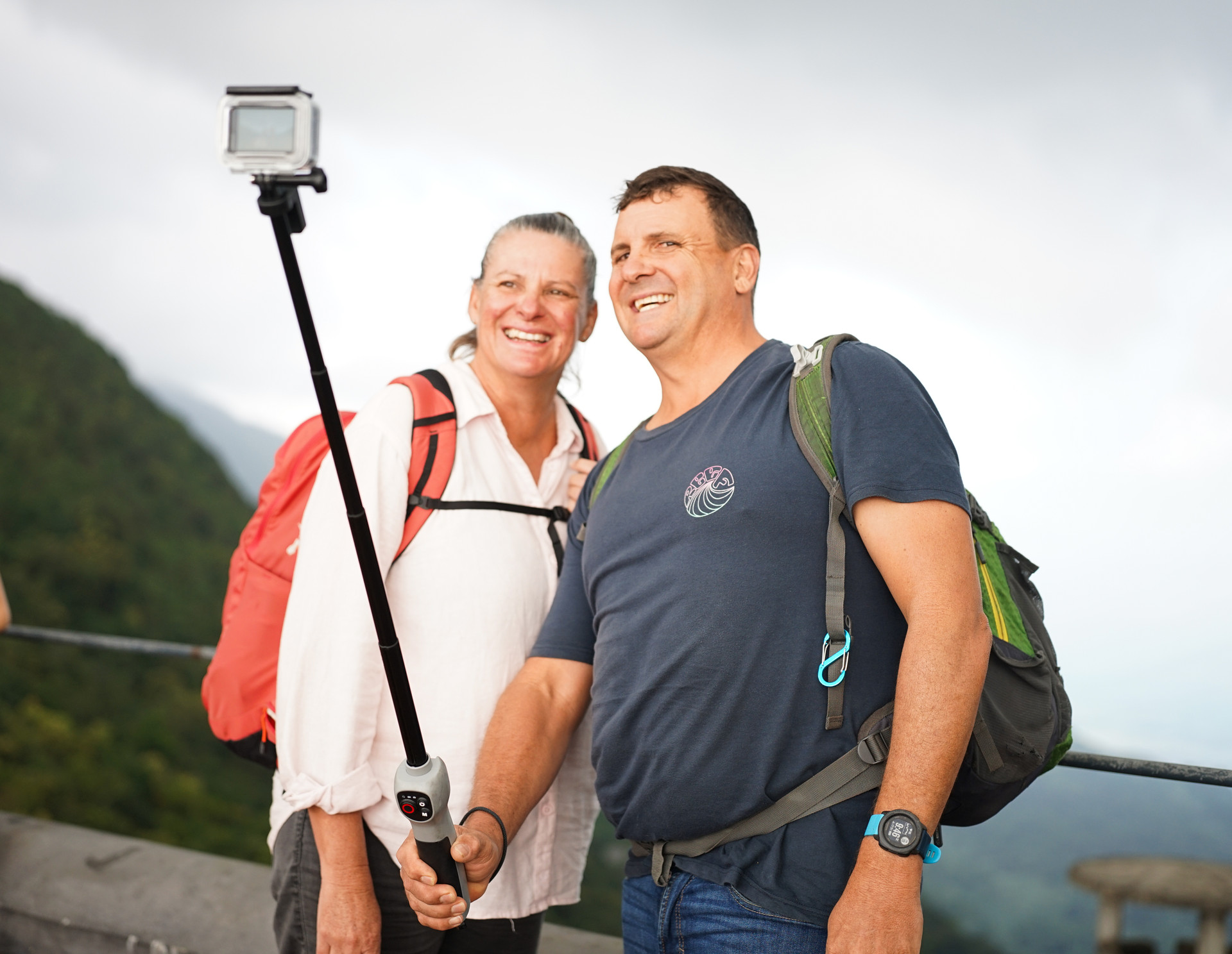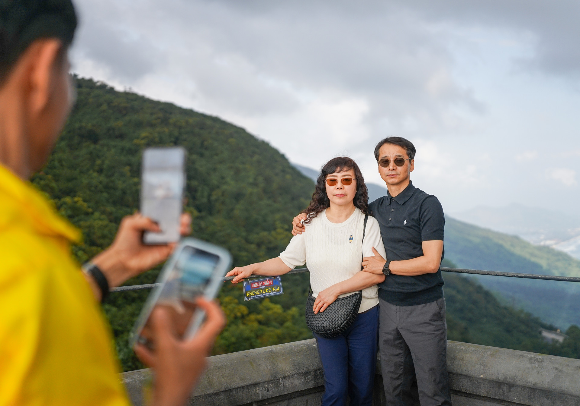 Du khách Hàn Quốc chụp ảnh lưu niệm tại Hải Vân Quan. Ảnh: XUÂN SƠN