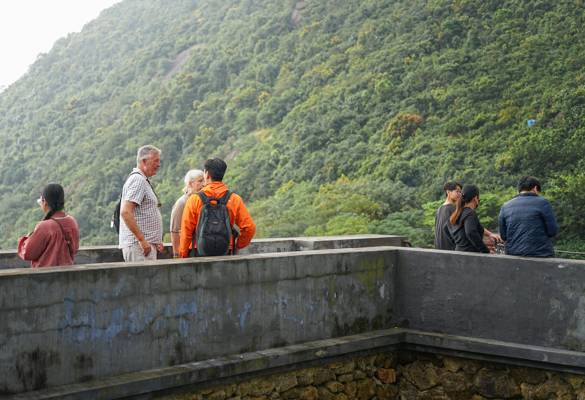 Những du khách quốc tế "check-in" Hải Vân Quan đầu năm mới. Ảnh: XUÂN SƠN