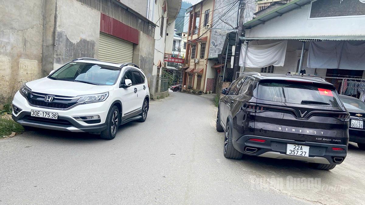 Người dân bức xúc khi 2 chiếc xe ô tô (trong ảnh) cùng đậu trên đường (không có tài xế bên trong xe), bịt lối vào đường Sùng Dúng Lù, tổ 36, phường Hà Giang 1, khiến các phương tiện ô ô khác không thể qua lại. Qua hình ảnh này nhắc nhở các lái xe cần nêu cao ý thức, đậu đỗ đúng nơi quy định, tránh gây cản trở giao thông.