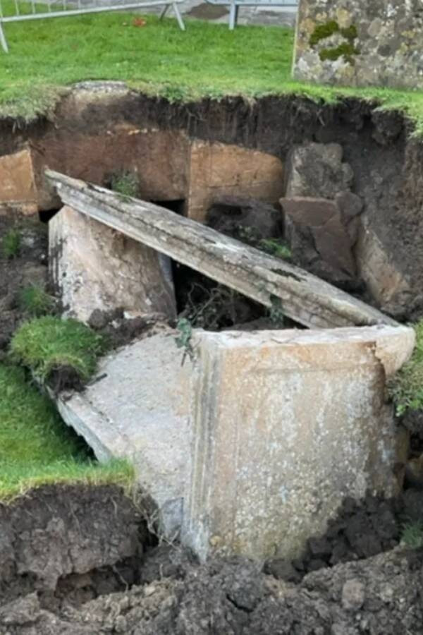 Mục sư Paul Fillery cho biết thêm, sự xói mòn đã đóng vai trò trong sự sụp đổ của ngôi mộ phía trên và lưu ý rằng sự việc như vậy là bất thường. Đồng thời, điều này cũng khiến việc kiểm tra danh tính của những người được chôn cất bên trong hầm mộ gia đình sẽ gặp nhiều khó khăn. Ảnh: RuralHistoria/Facebook.