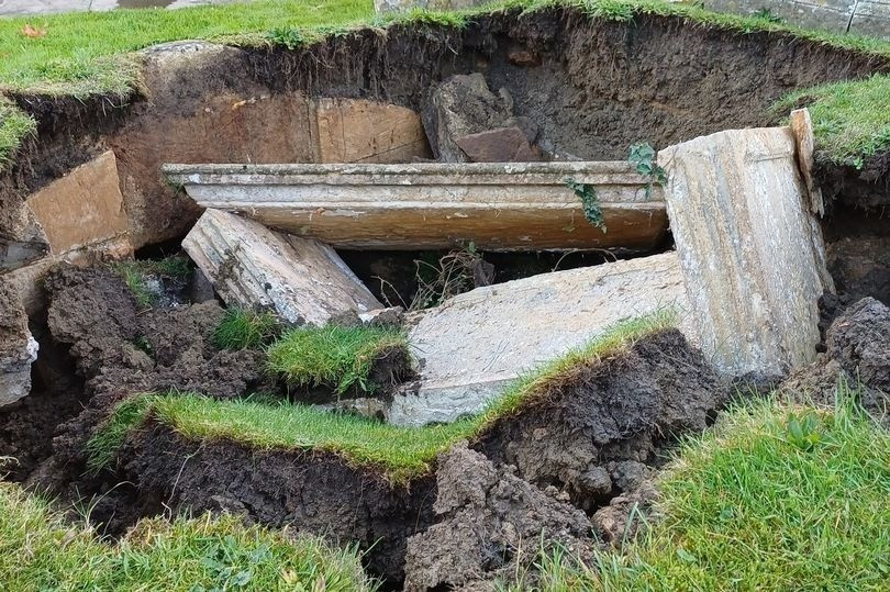 Ngôi mộ có niên đại từ thế kỷ 18 bị sụp đổ đã tạo ra một hố sâu khoảng 3,7m. Hiện các chuyên gia vẫn chưa thể xác định sự việc này có gây hư hại cho bất kỳ ngôi mộ nào xung quanh hay không hoặc liệu có nguy cơ xảy ra việc tương tự không. Ảnh: All Saints Church.