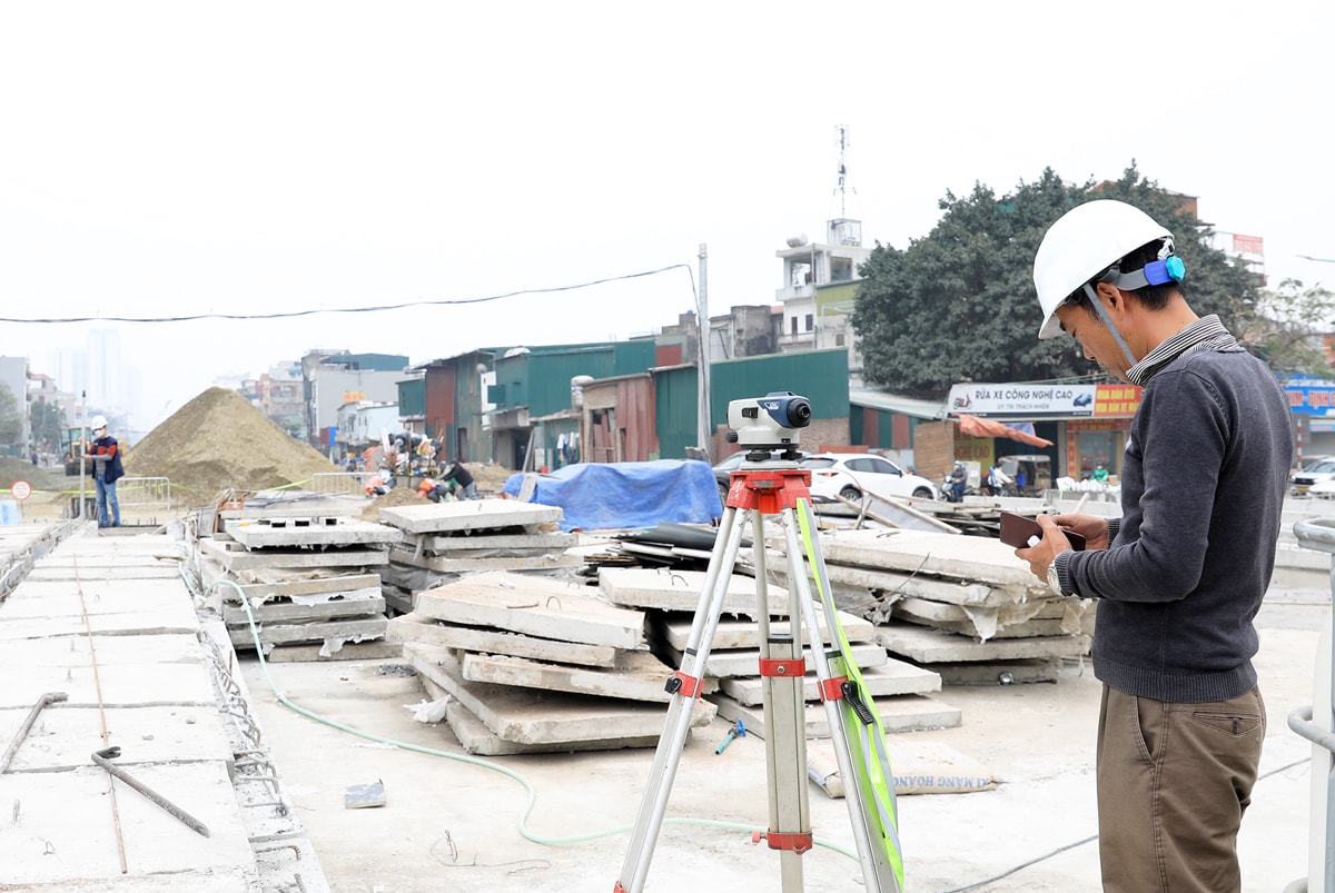 Kỹ sư công trường giám sát chặt chẽ hoạt động thi công.