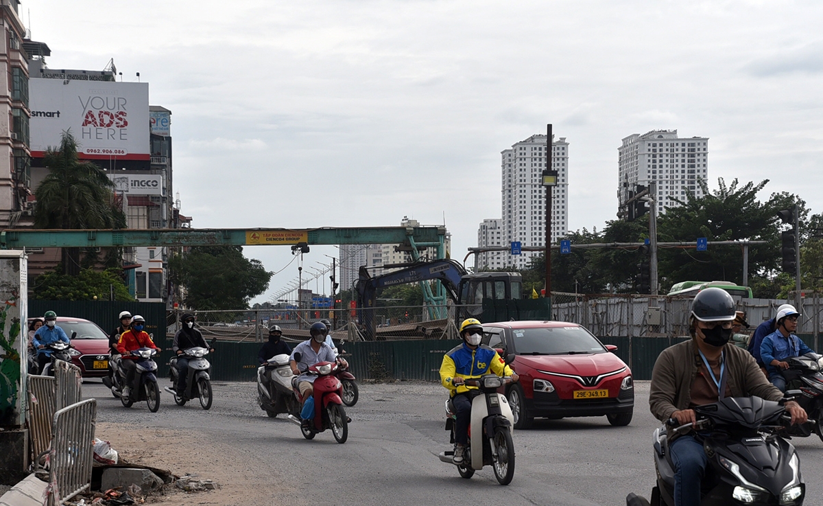 Tại vị trí thi công đốt hầm trên đường Giải Phóng công nhân khẩn trương làm việc.