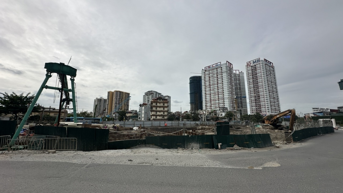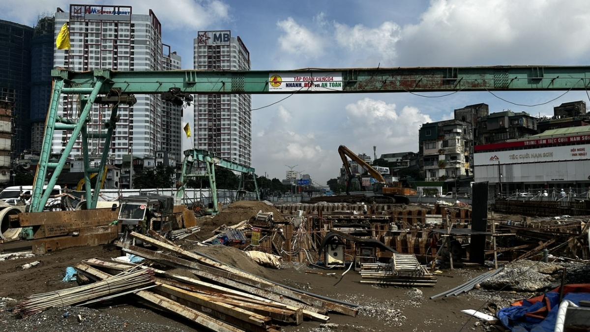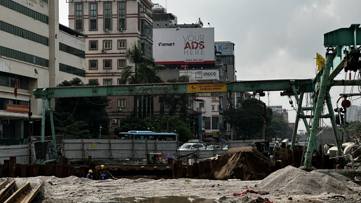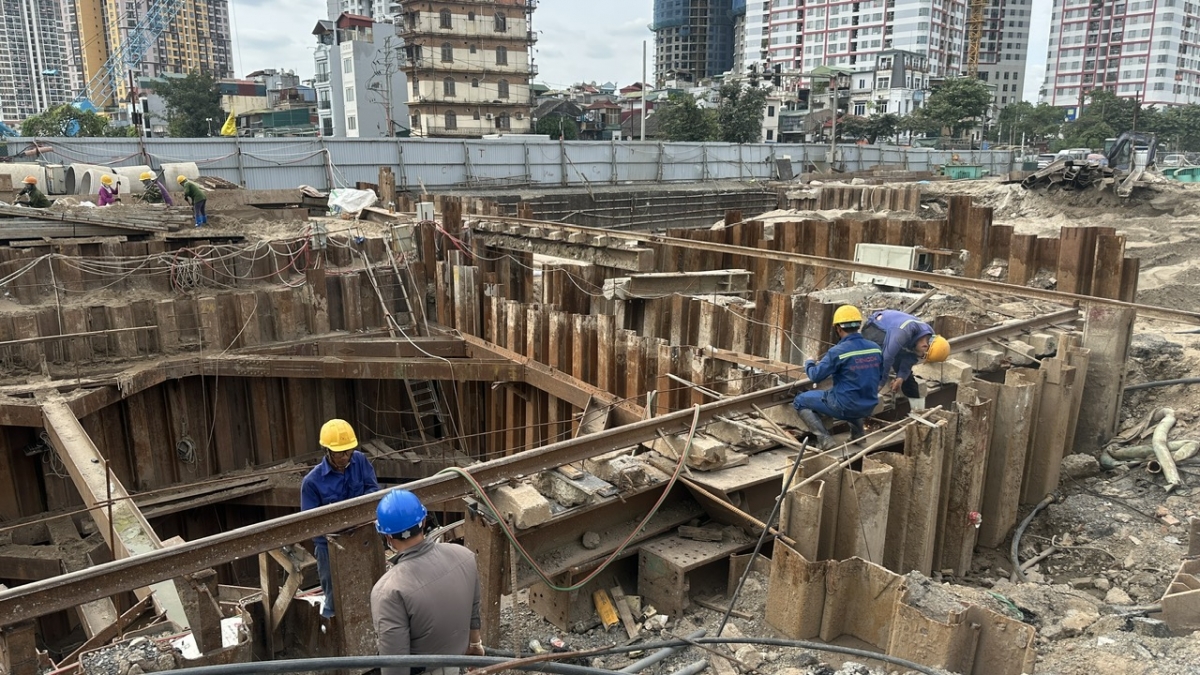 Bên trong công trường, các đốt hầm kín đang được thi công dưới lòng đường Giải Phóng