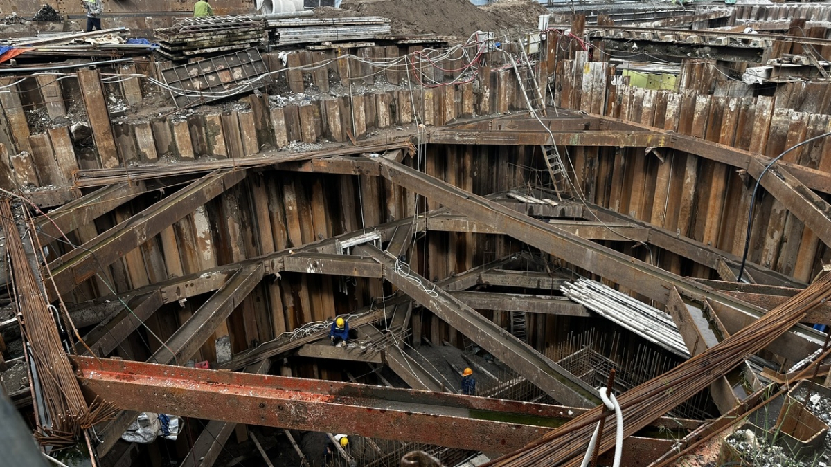 Khung thép khổng lồ hiện ra dưới lòng đường