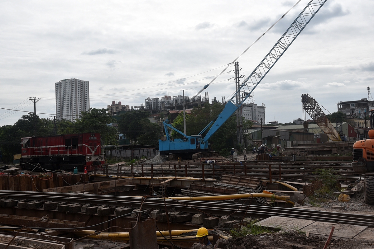 Tại vị trí thi công hạng mục hầm chui đoạn bên dưới đường sắt.