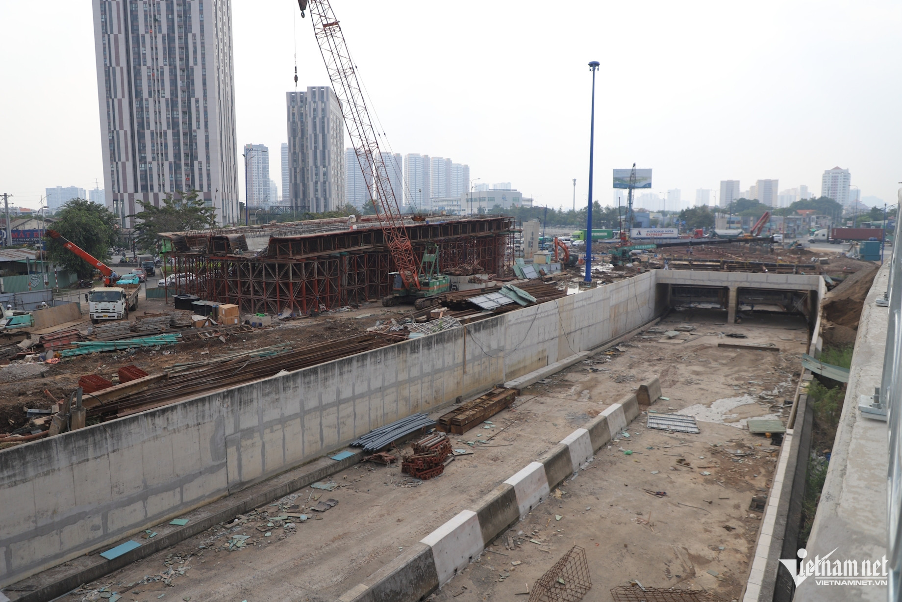 Ngày 10/1, ghi nhận của PV VietNamNet tại công trường nút giao An Phú – điểm giao cắt giữa đại lộ Mai Chí Thọ, đường Lương Định Của và cao tốc TPHCM – Long Thành – Dầu Giây – cho thấy không khí thi công đang hết sức khẩn trương.