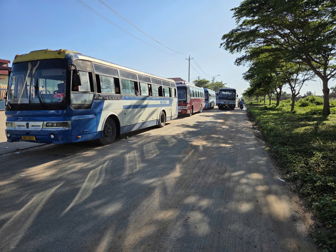 Đội xe chở công nhân của KCN Hàm Kiệm II