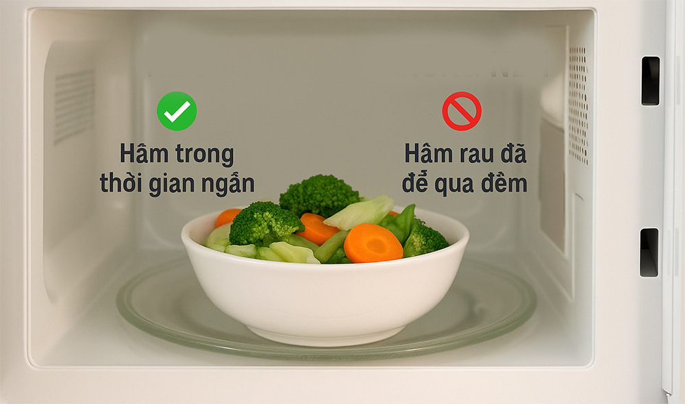 Với rau, chính vì có hàm lượng nước cao, chúng hấp thu năng lượng vi sóng khá tốt. Nếu bạn hâm trong thời gian ngắn, nhiệt độ vừa phải thì dinh dưỡng không bị mất đi đáng kể so với việc hâm nóng bằng cách khác. Một số nghiên cứu thậm chí chỉ ra, làm nóng rau bằng lò vi sóng đúng cách còn giữ được nhiều vitamin hơn so với việc đun lại trên chảo, vì vi sóng làm chín nhanh và ít tiếp xúc với không khí.