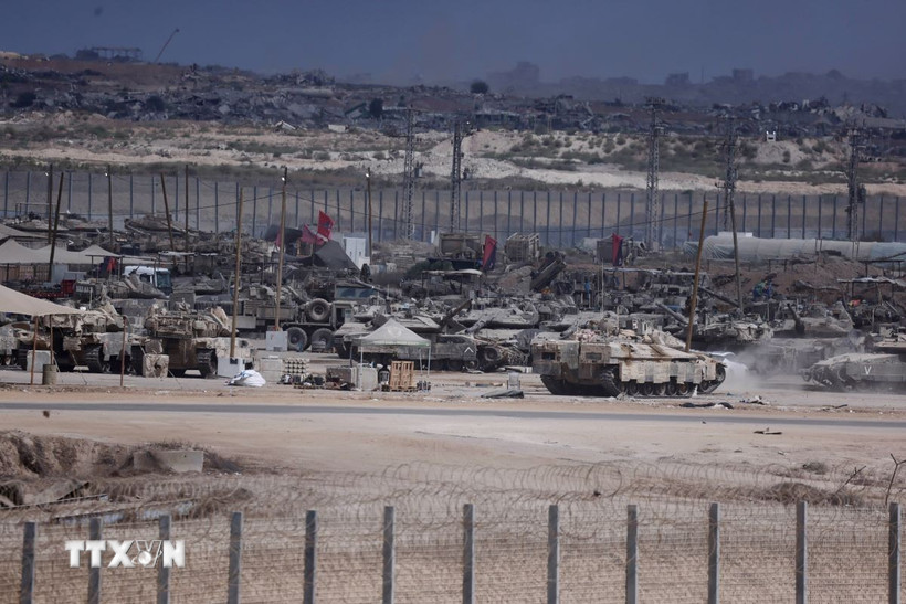 Xe quân sự Israel tại biên giới Israel-Gaza, ngày 9/10/2025. (Ảnh: THX/TTXVN)