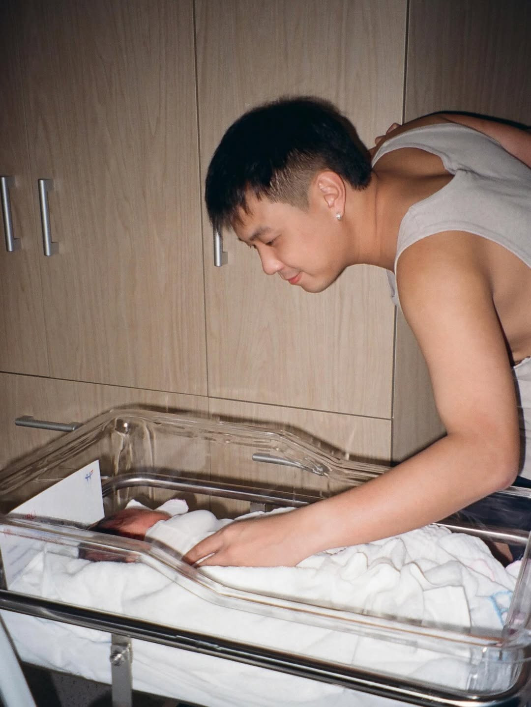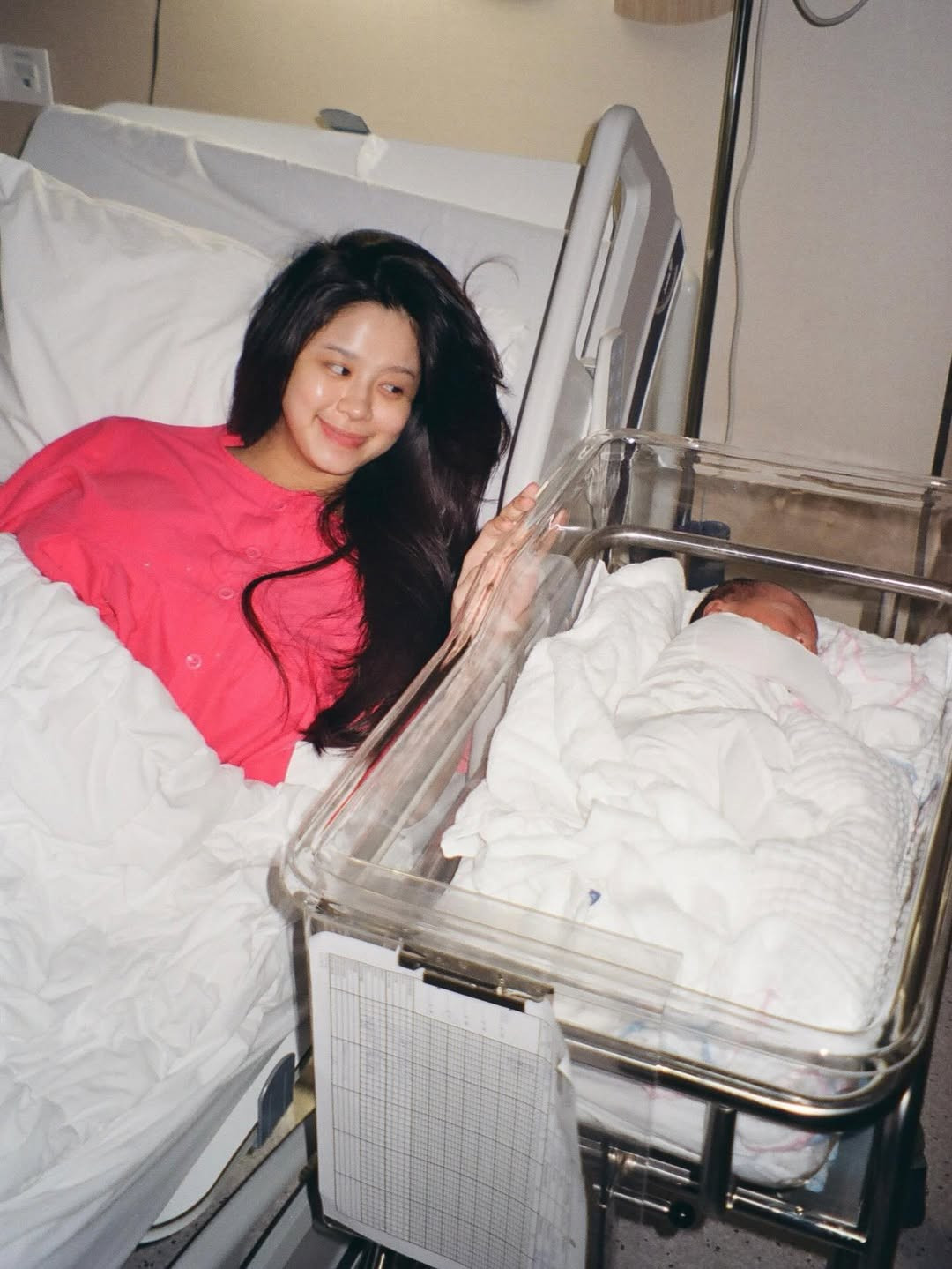 Từ những khoảnh khắc mẹ bỉm Hàn Hằng nằm trên giường, mỉm cười rạng rỡ nhìn con gái sơ sinh nằm trong nôi. Huyme cũng là một người cha tận tâm, cúi xuống ngắm nhìn và chạm vào thiên thần nhỏ của mình.(Ảnh: IGNV)