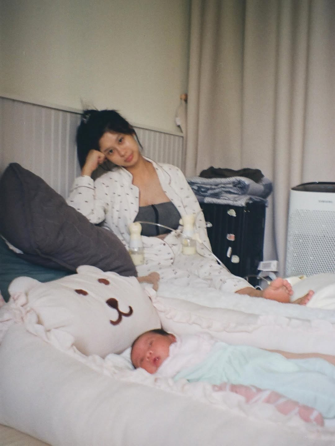 Việc cô công khai những khoảnh khắc đời thường, từ lúc ở bệnh viện đến những ngày đầu quay cuồng với bỉm sữa, đã nhận được nhiều lời chúc mừng và sự đồng cảm từ cộng đồng mạng, đặc biệt là các mẹ bỉm. (Ảnh: FBNV)