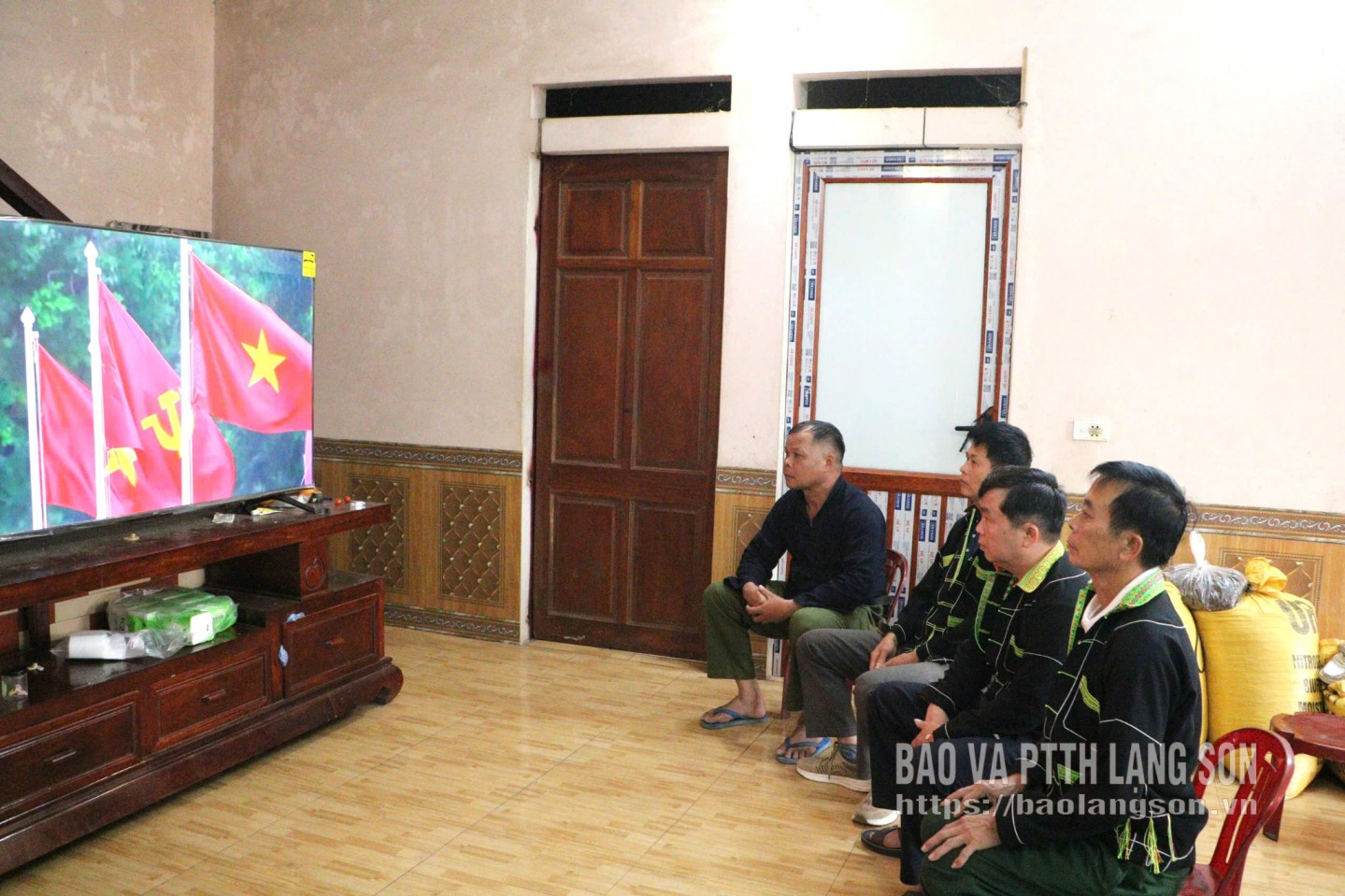 Người dân thôn Nà Tèn, xã Công Sơn theo dõi những thông tin về Đại hội đại biểu toàn quốc lần thứ XIV của Đảng trên truyền hình