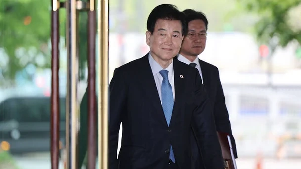Bộ trưởng Thống nhất Hàn Quốc Jeong Dong-young, ngày 20/4, sau khi kết thúc lịch trình công tác bên ngoài đã trở về Tòa nhà Chính phủ Seoul tại khu Gwanghwamun, thủ đô Seoul. Ảnh: news.nate.
