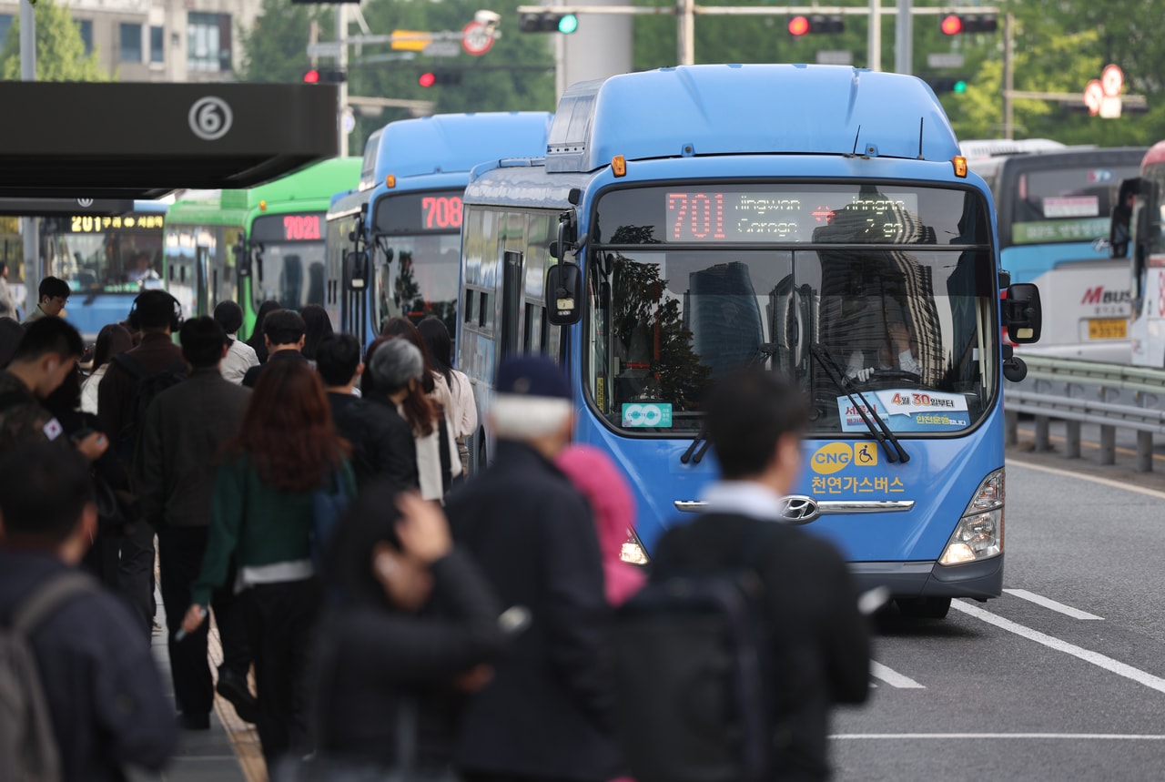 Hành khách chờ xe buýt tại Thủ đô Seoul (Hàn Quốc). Ảnh: Korea Herald.