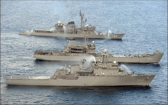 Một cuộc tập chung trên biển giữa Nhật Bản và Hàn Quốc. Ảnh: Yonhap News