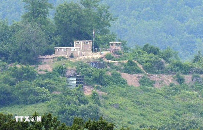 Một tiền đồn tại khu vực biên giới Triều Tiên, nhìn từ tỉnh Gyeonggi, Hàn Quốc. (Ảnh: Yonhap/TTXVN)