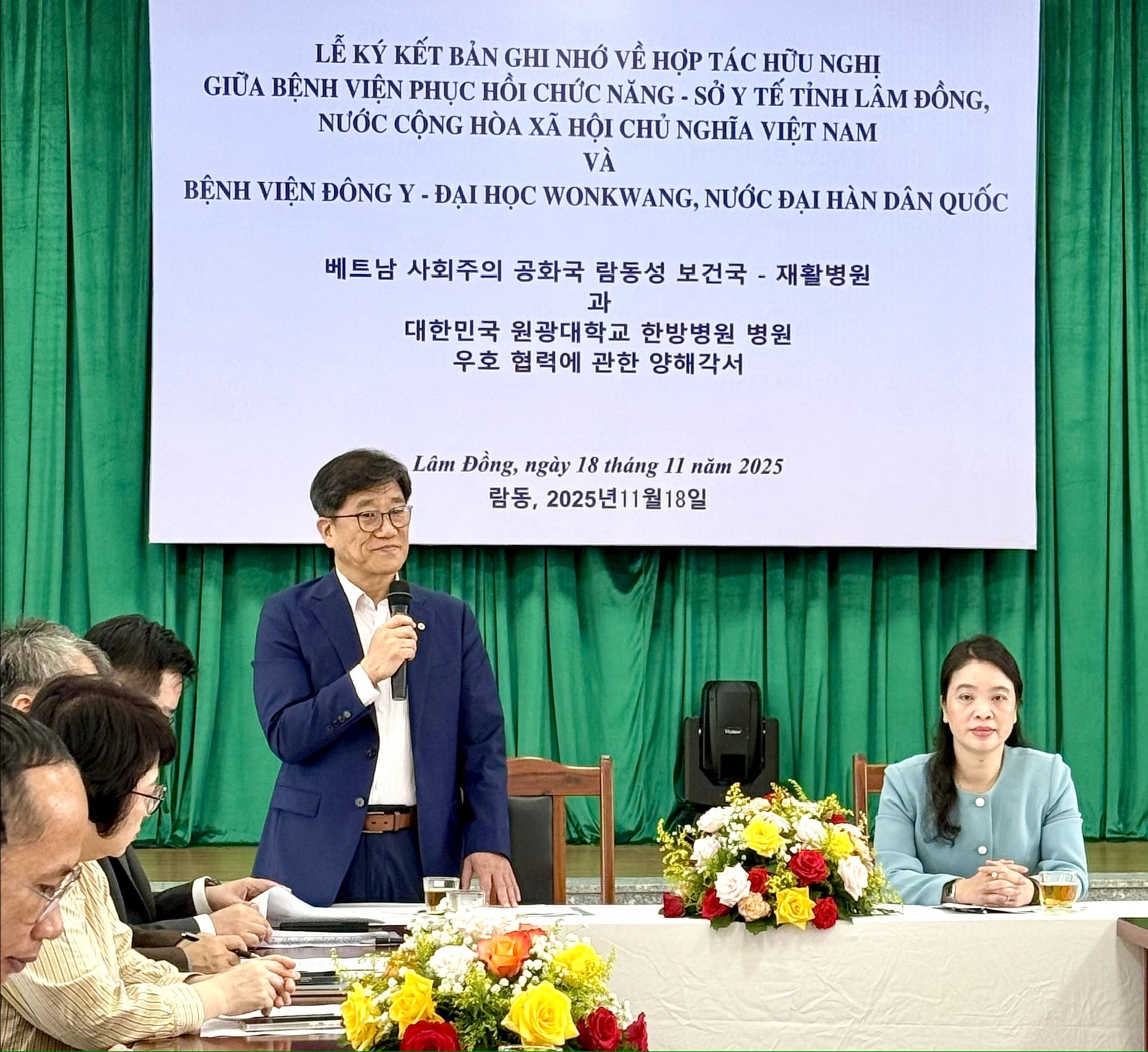 Ông Jeon Byoung Hun, Phó Hiệu trưởng Đại học Wonkwang, cho biết trong chuyến công tác tại Lâm Đồng lần này, ngoài việc ký kết hợp tác với Bệnh viện PHCN tỉnh, đoàn cũng đã ký kết chương trình phối hợp với Trường Đại học Yersin Đà Lạt nhằm thúc đẩy đào tạo và phát triển lĩnh vực Đông y.
