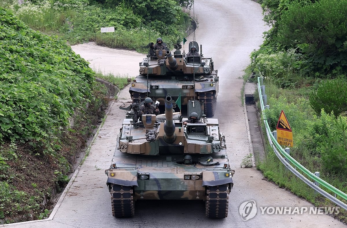 Các xe tăng chiến đấu chủ lực K2GF trong một cuộc tập trận quân sự được tổ chức tại Hongcheon, cách Seoul 86 km về phía Đông (ảnh chụp ngày 3/7/2025). Ảnh: Yonhap