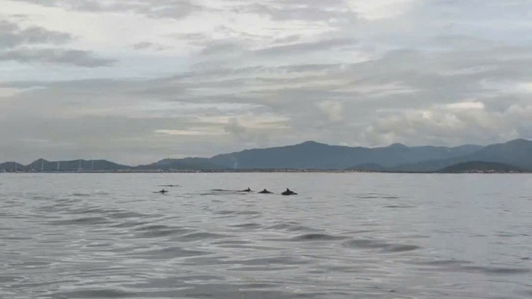 Đàn cá heo xuất hiện tại bờ biển gần Khu bảo tồn biển Hòn Cau.