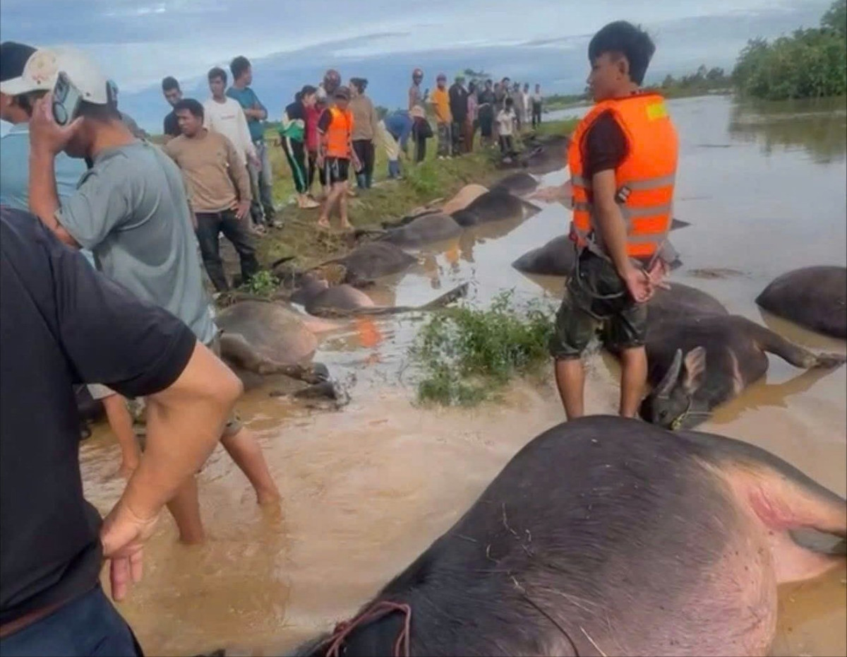 Sáng 7/11, thông tin từ UBND xã Ea Súp (tỉnh Đắk Lắk) cho biết, do ảnh hưởng của bão số 13 Kalmeagi, nước từ thượng nguồn đổ về khiến 23 con trâu của 7 hộ dân chết do nước ngập.