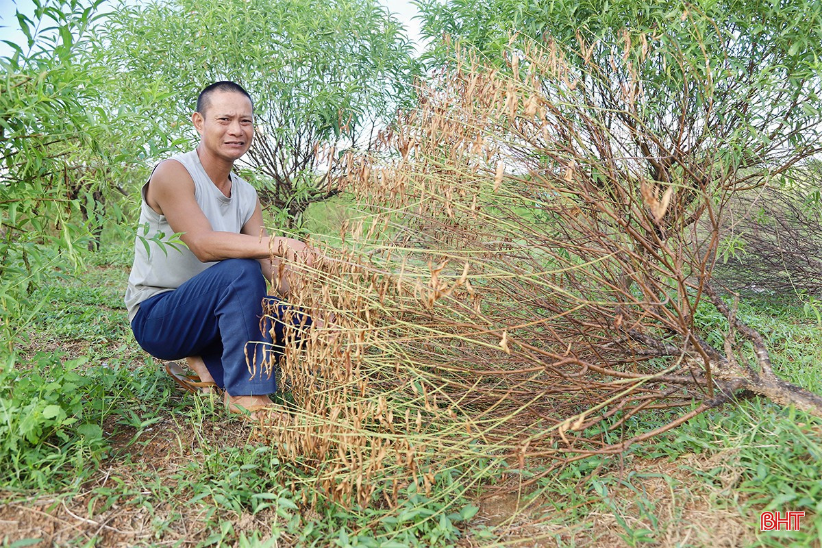 Thế nhưng, sau bão cơn bão số 10, hơn 400 gốc đào của gia đình anh Sự đã bị đổ ngã và chết. Nhớ lại thành quả năm trước, anh Sự không giấu nổi tiếc nuối: “Năm ngoái, chúng tôi bán được gần 1.000 gốc, với giá từ 500 nghìn đồng đến 1,2 triệu đồng/gốc, đem về nguồn thu khá cho gia đình. Năm nay, nếu suôn sẻ, chúng tôi kỳ vọng vượt mốc đó. Thế nhưng, bão số 10 gây thiệt hại nặng, coi như mất đi gần một nửa số vốn”.