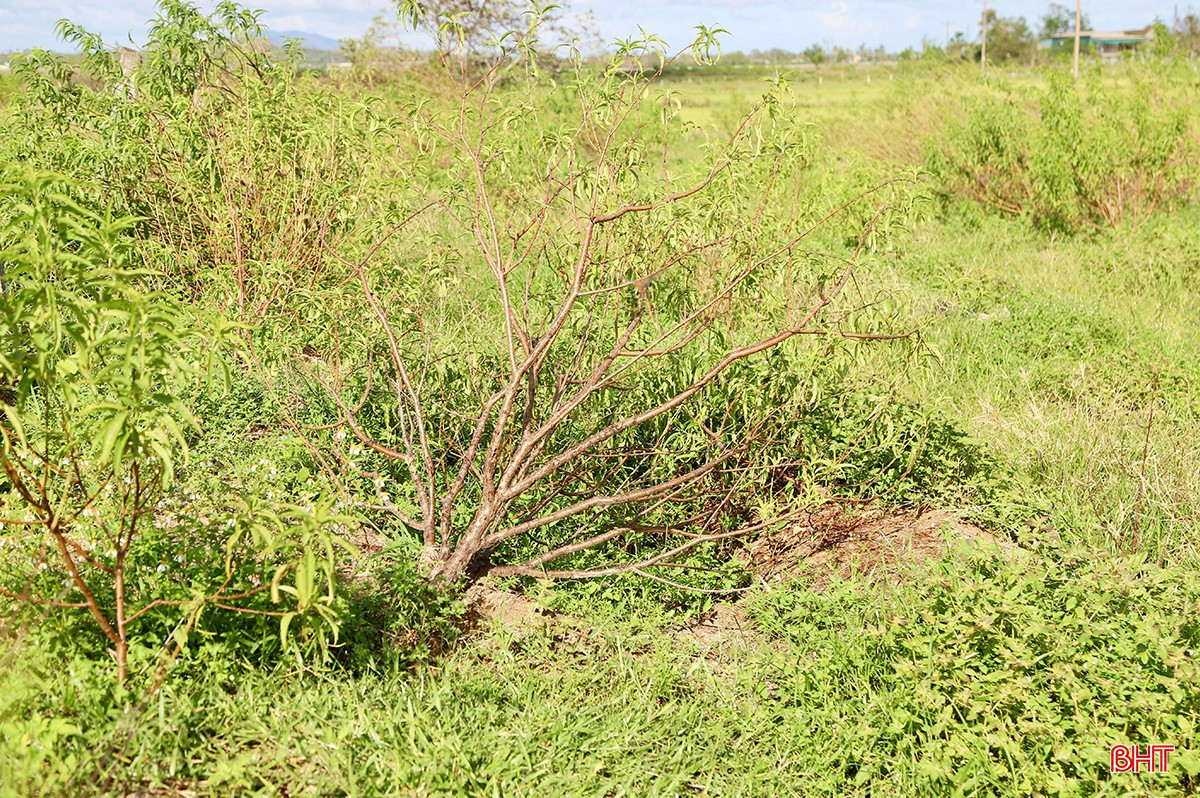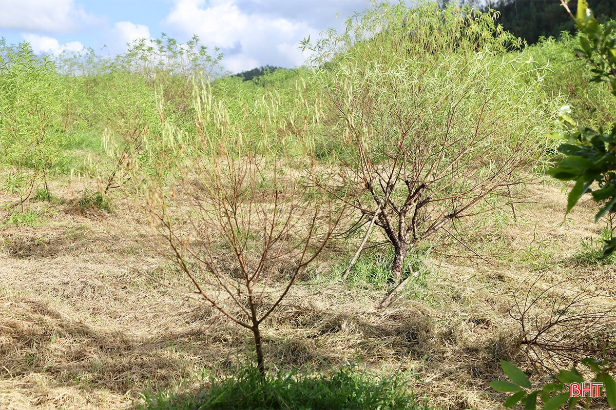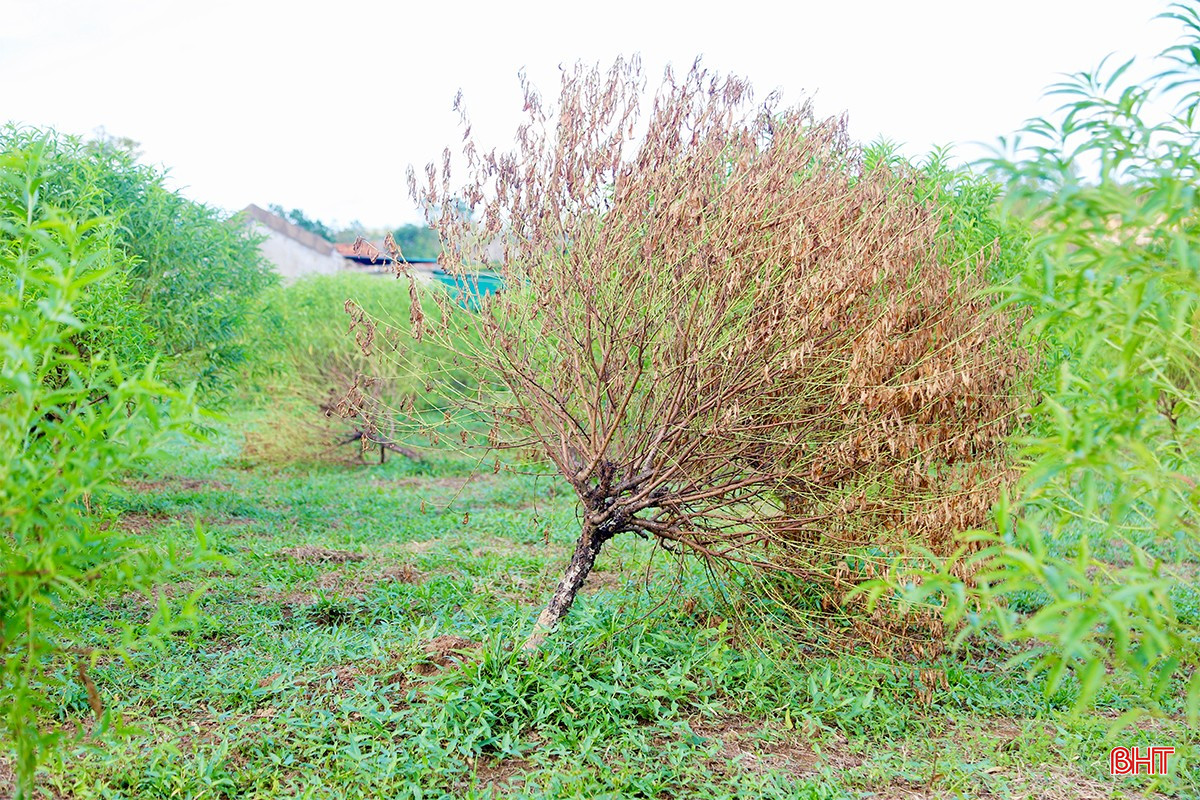 Những gốc đào bà con thôn Kim Sơn từng cần mẫn chăm sóc, giờ đây đang héo hắt, chết dần.