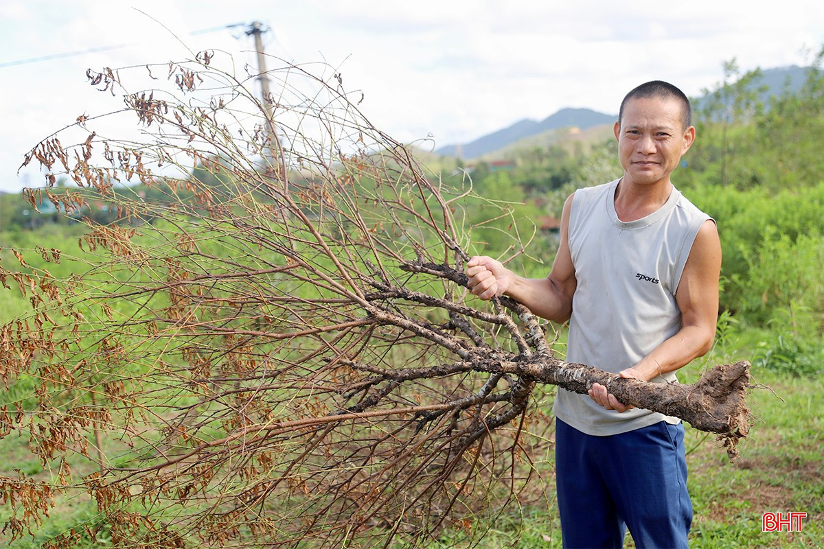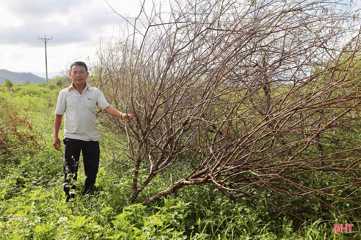 Thôn Kim Sơn (xã Toàn Lưu) được biết đến là một làng trồng đào phai có tiếng của Hà Tĩnh. Khoảng hơn 4 tháng nữa là đến Tết, thời điểm mà hàng nghìn gốc đào phai bung nở, mang lại sinh kế và hơi thở mùa xuân cho cả một vùng quê. Thế nhưng, sau cơn bão số 10 vừa qua, hàng nghìn gốc đào nơi đây đã bị quật đổ, chết khô.