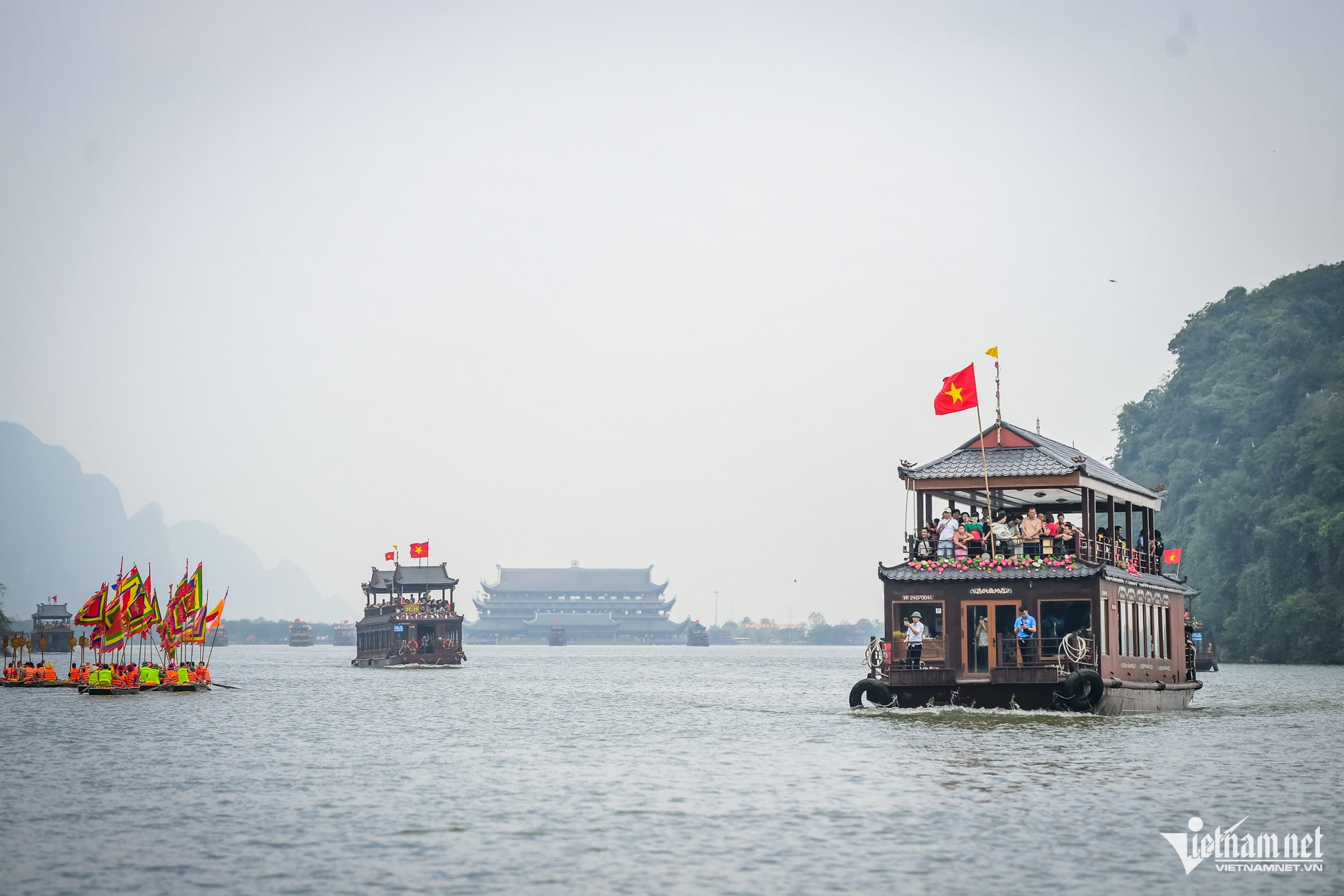 Năm nay, ban tổ chức bố trí hơn 300 thuyền lớn, nhỏ và xe điện chở hơn 2.000 du khách, Phật tử tham gia đoàn rước nước.