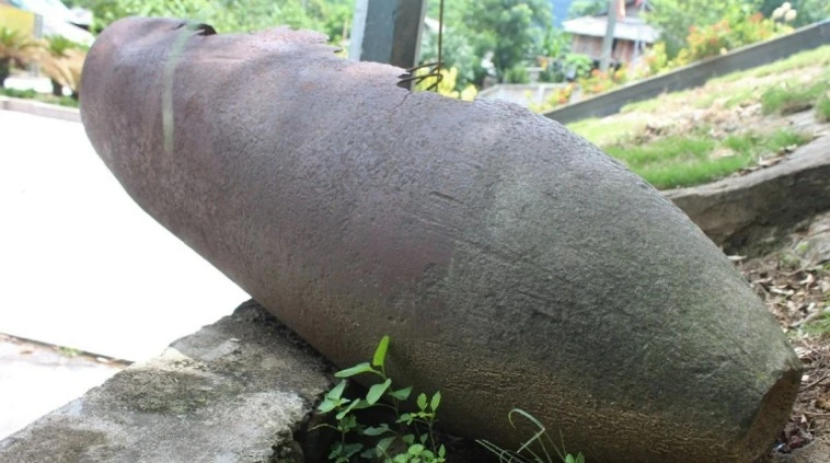 Xác quả bom còn sót lại ở khu di tích lịch sử Hang Co Phương.