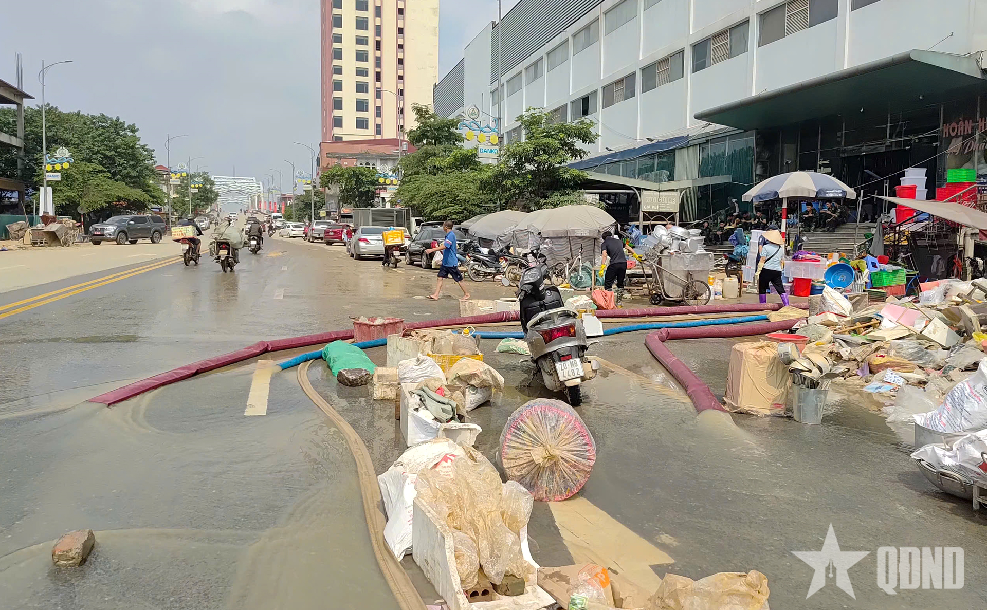 Từ mấy ngày hôm nay, các đơn vị thuộc Quân khu 1 và Quân đoàn 12 luôn tập trung đông ở đây để giúp chính quyền và người dân người dân thu dọn bùn, rác, vệ sinh đường phố, nhà cửa… Tuy nhiên, xung quanh chợ Thái cũng như nhiều tuyến đường trung tâm của tỉnh Thái Nguyên, rác, bùn và mọi thứ vẫn rất ngổn ngang, cần thêm nhiều thời gian để thu dọn.