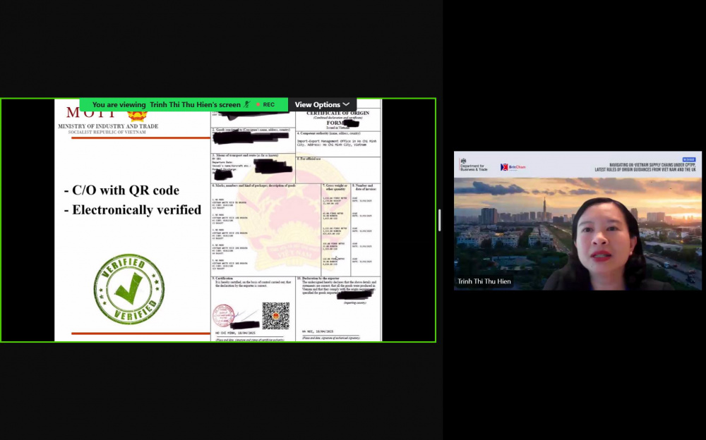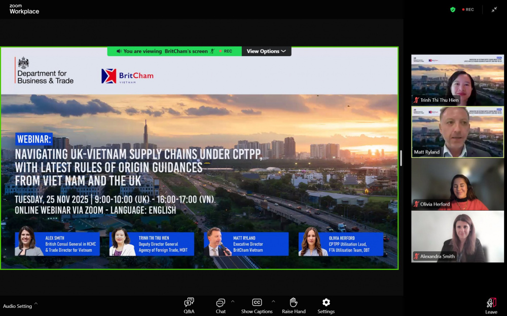 Hội thảo do Bộ Kinh doanh và Thương mại Anh cùng Hiệp hội Doanh nghiệp Anh tại Việt Nam (BritCham) tổ chức, tập trung vào thảo luận về việc tối ưu hóa chuỗi cung ứng thông qua CPTPP và giải thích các Thông tư liên quan của Việt Nam về quy tắc xuất xứ.